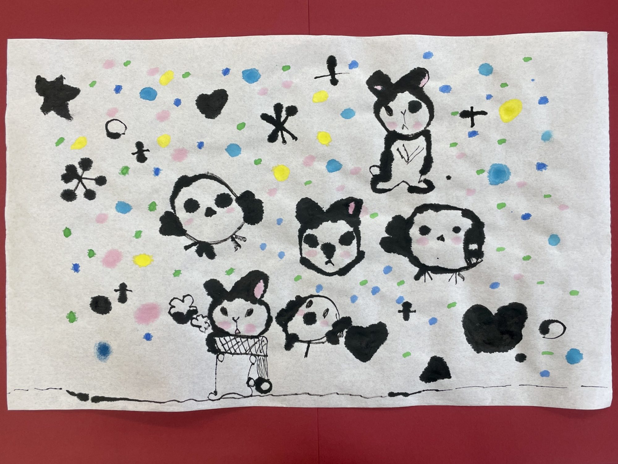 桃から生まれたももこ先生 先生2025年1月31日 9:05 AM fumiちゃんこんにちは! 墨の黒と、やさしいパステルカラーがとっても 似合っていますね~ しまえなが、かわいい!! うさぎの表情もすごくかわいいね ログインして返信する ↓