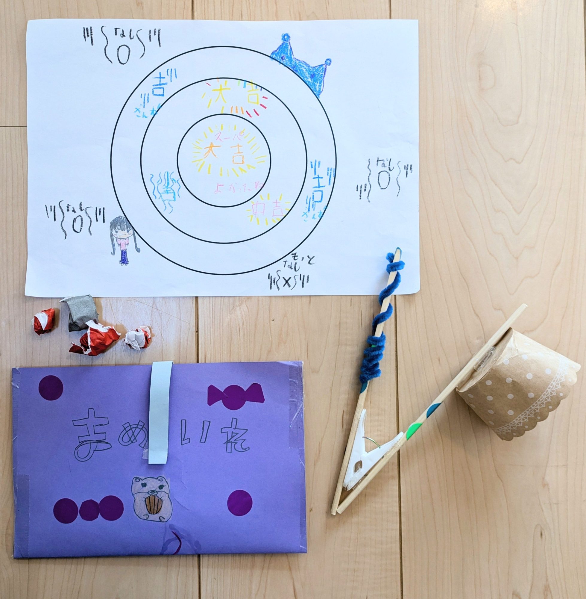 つねお先生 先生2025年1月30日 9:04 AM おみくじまとあて、すごく楽しいアイデアだね!まとに描かれたねこと女の子がとってもかわいくて、みんなが笑顔になるデザインだね。 むらさきの「まめいれ」もリボンのシールがキラリと目を引いておしゃれ! 早くまとあてゲームをやってみたくなっちゃうよ! これからも、遊びながらみんなが楽しめるアイデアをどんどん作ってね! ログインして返信する ↓