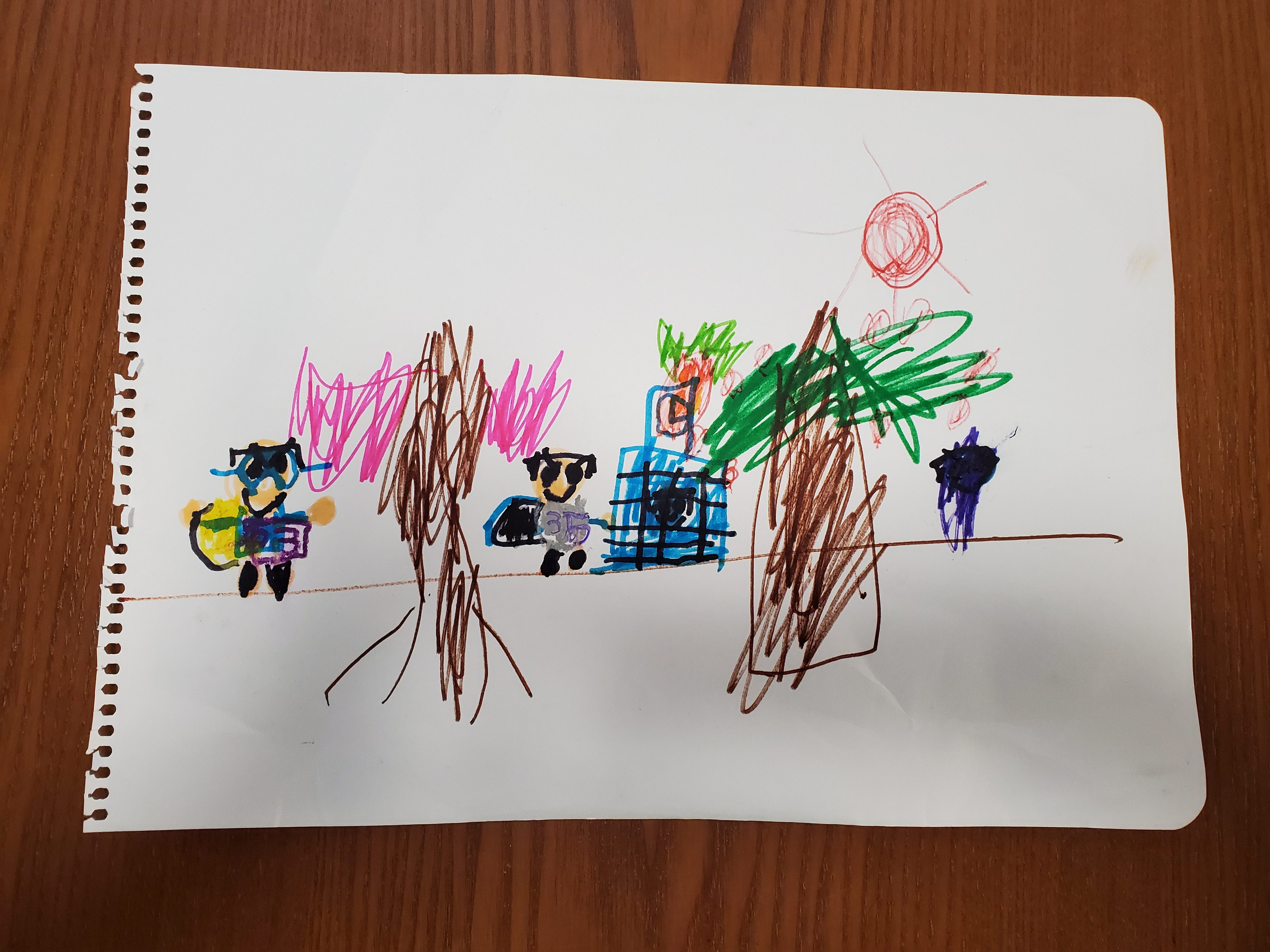 いろいろな色が使えてるね。人を横向きに表現ができるなってビックリ!