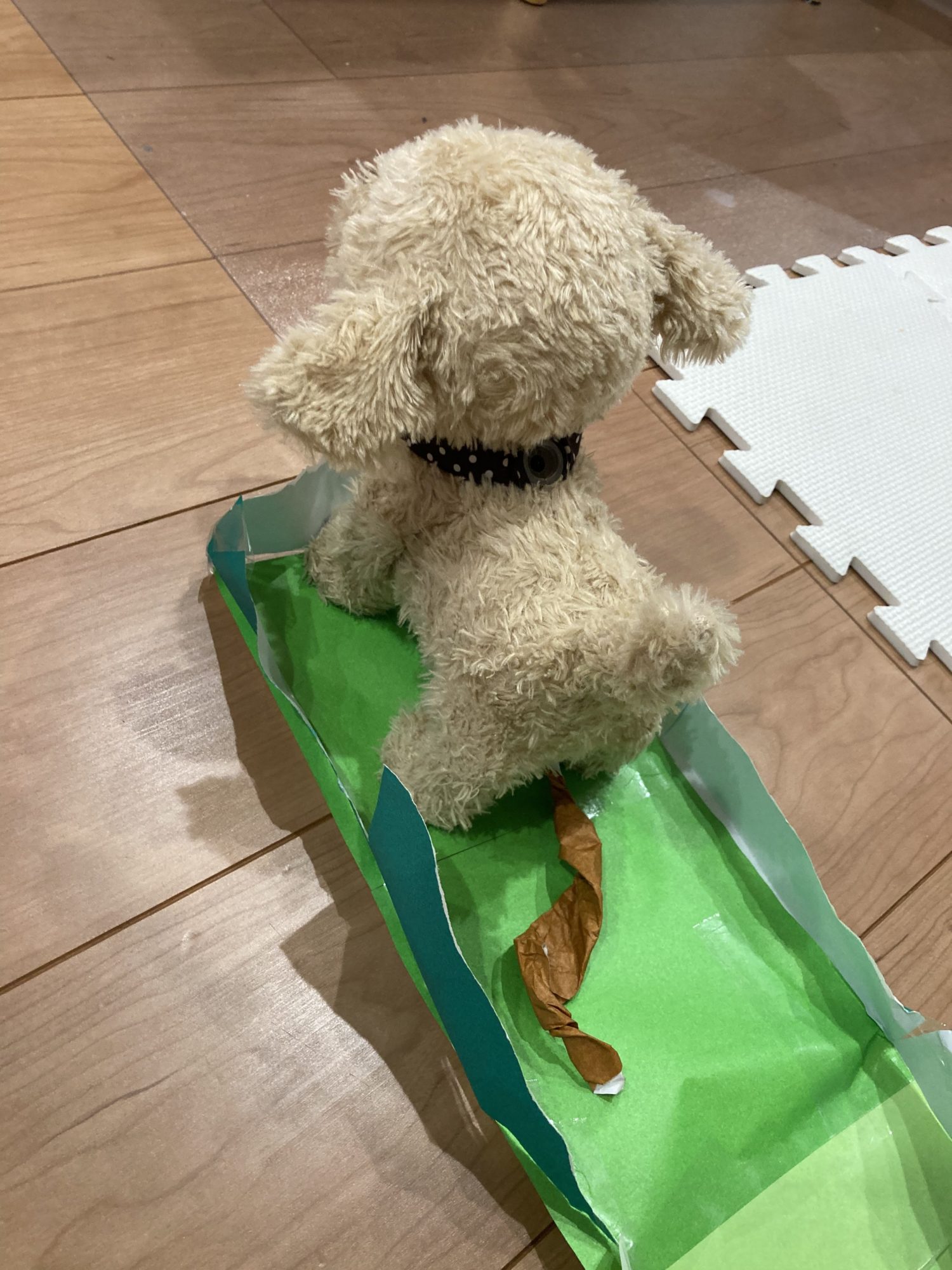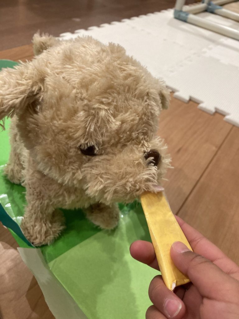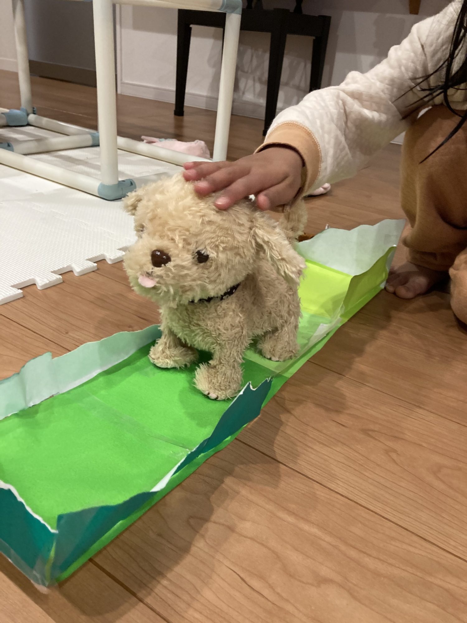 そして うんちを袋で持ち帰るというところまでシミュレーション しているのが驚きです!✨ うんちしている様子が可愛くて、思わず笑っちゃいました! 😂💩 お世話の大切さをしっかり考えながら遊んでいる様子が、とても素敵だなと思いました。