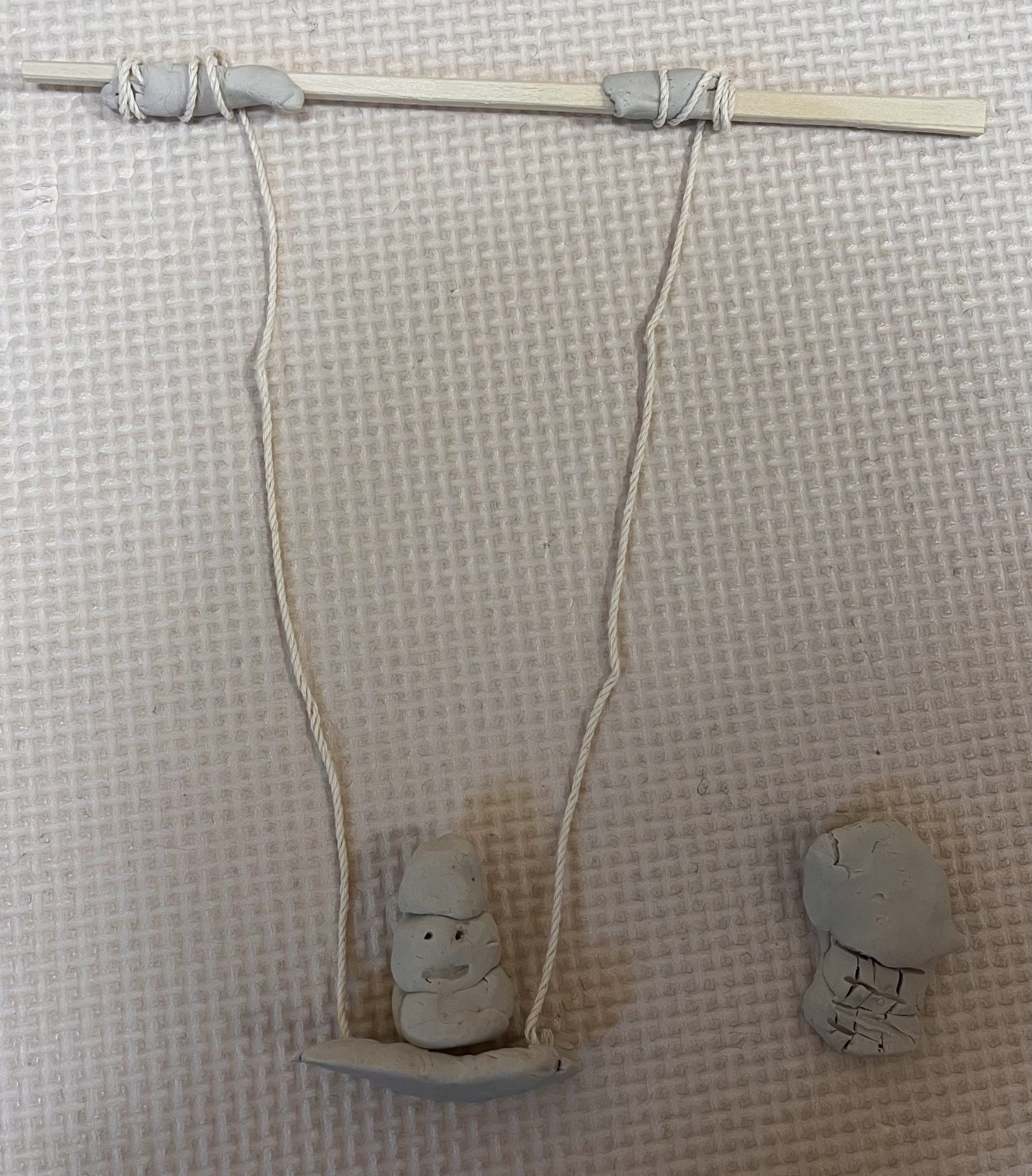 ブランコのひもが うごかないように ねんどをつけてから ひもをくっつけたの いいくふうだね