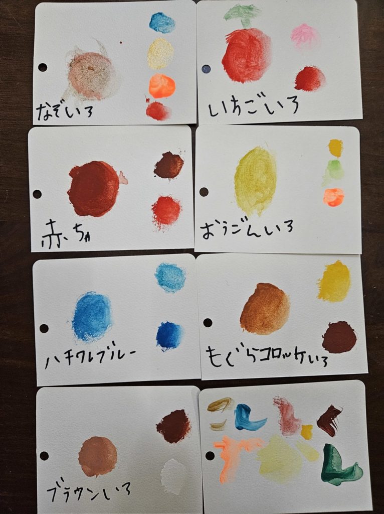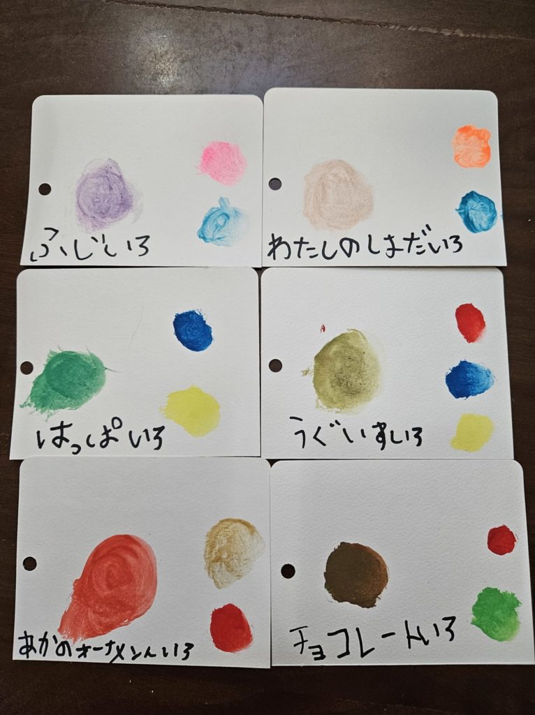絵の具を混ぜて色を作るのや色の名前を考えるのもおもしろかったです😊