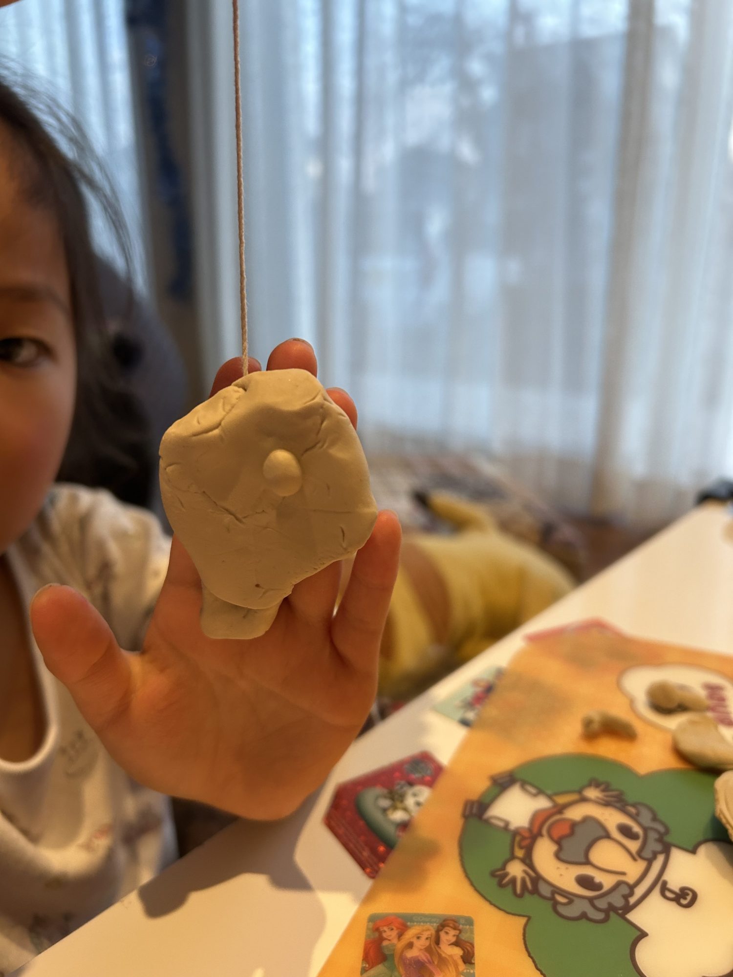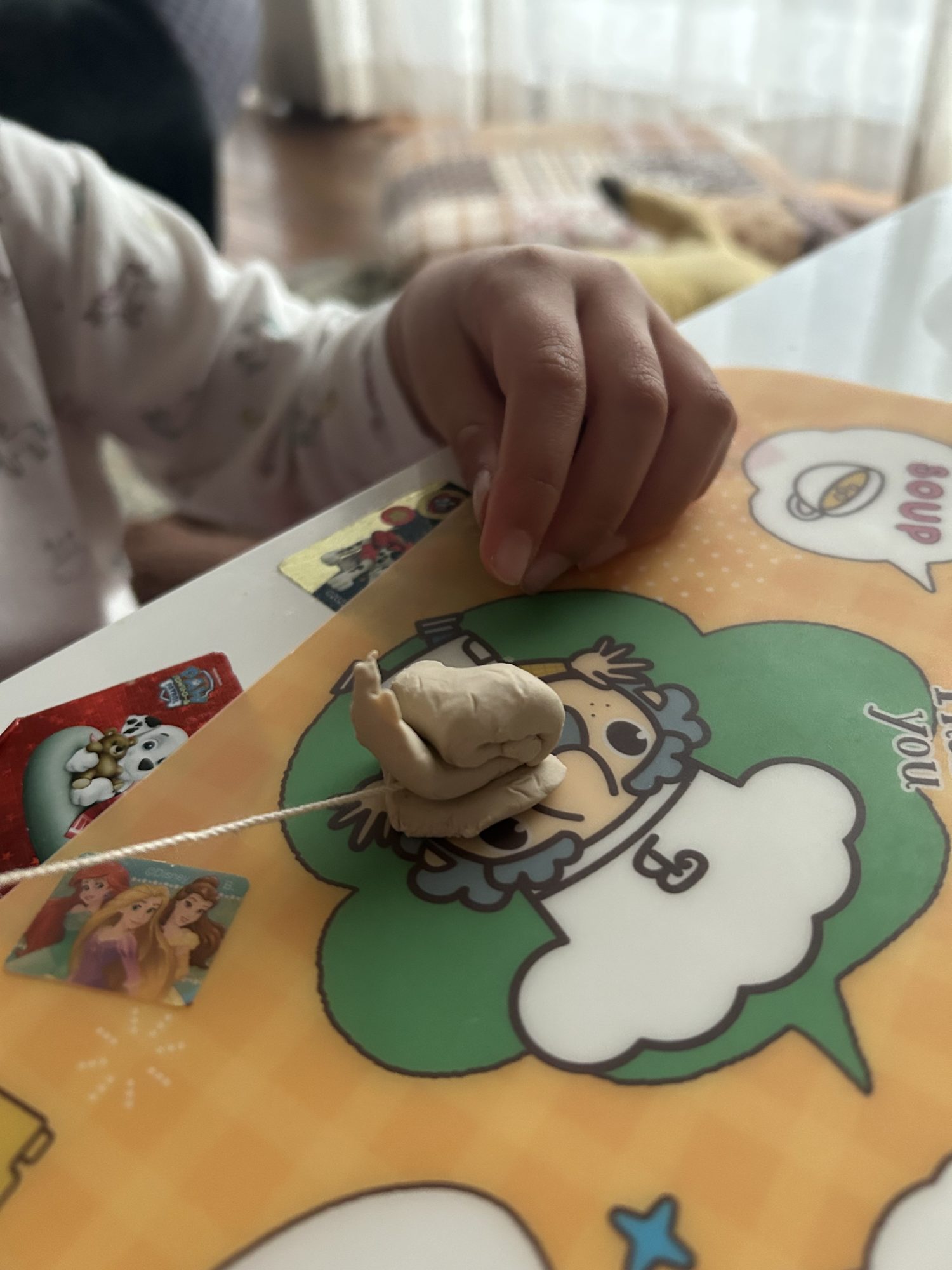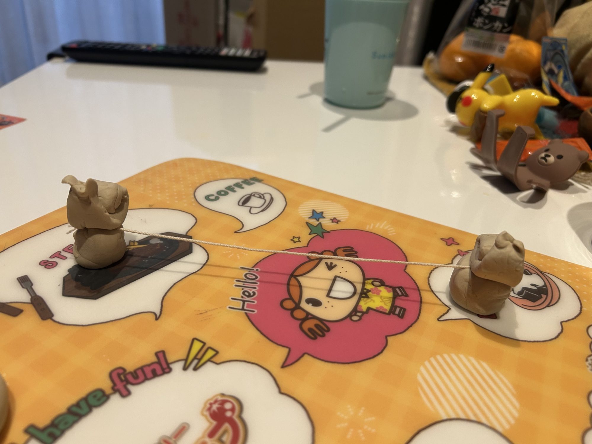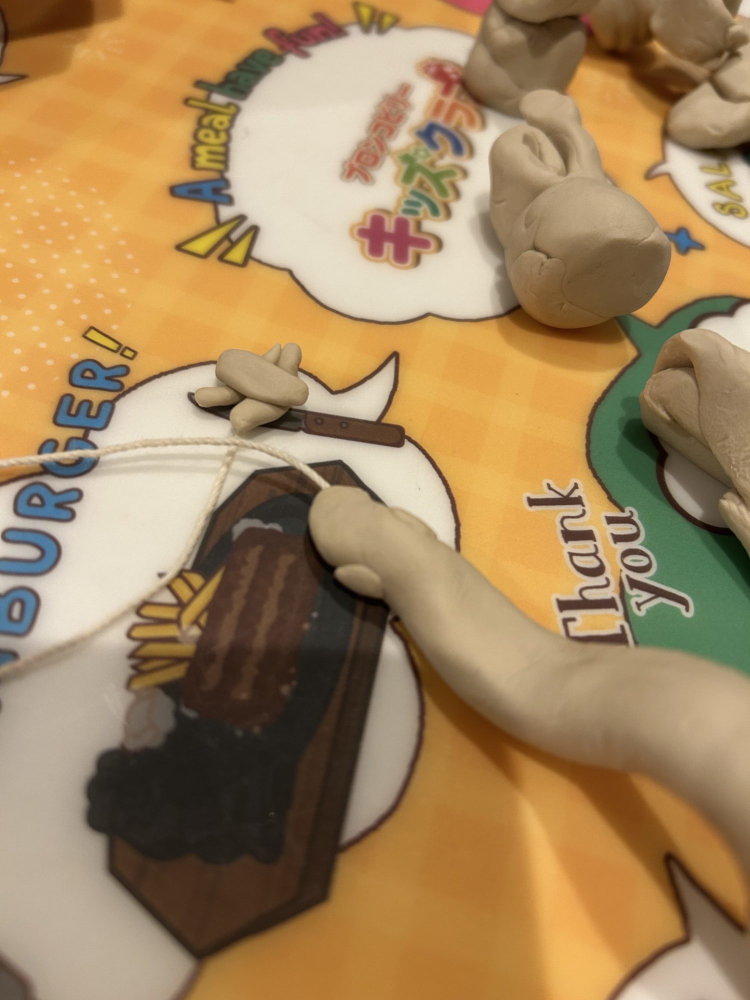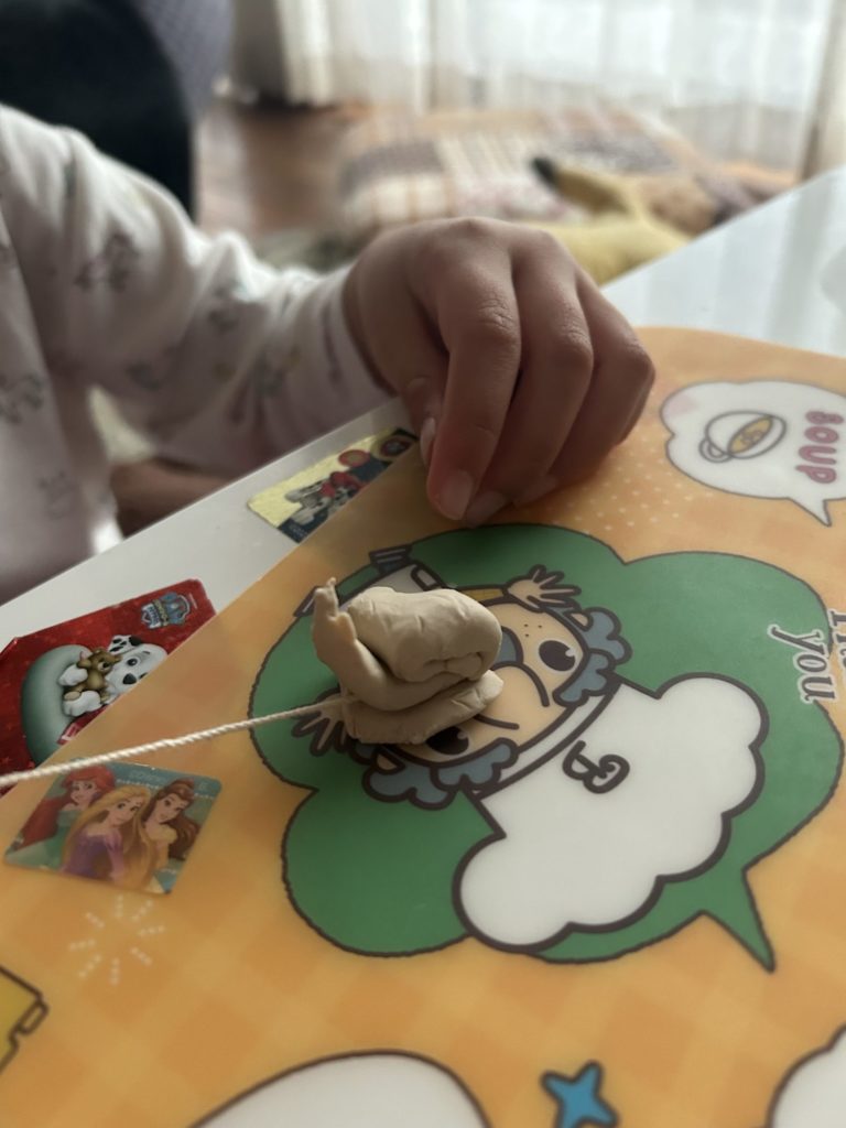 粘土が紐を食べてる!