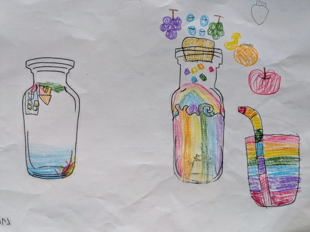 しほちゃんの虹のジュース。