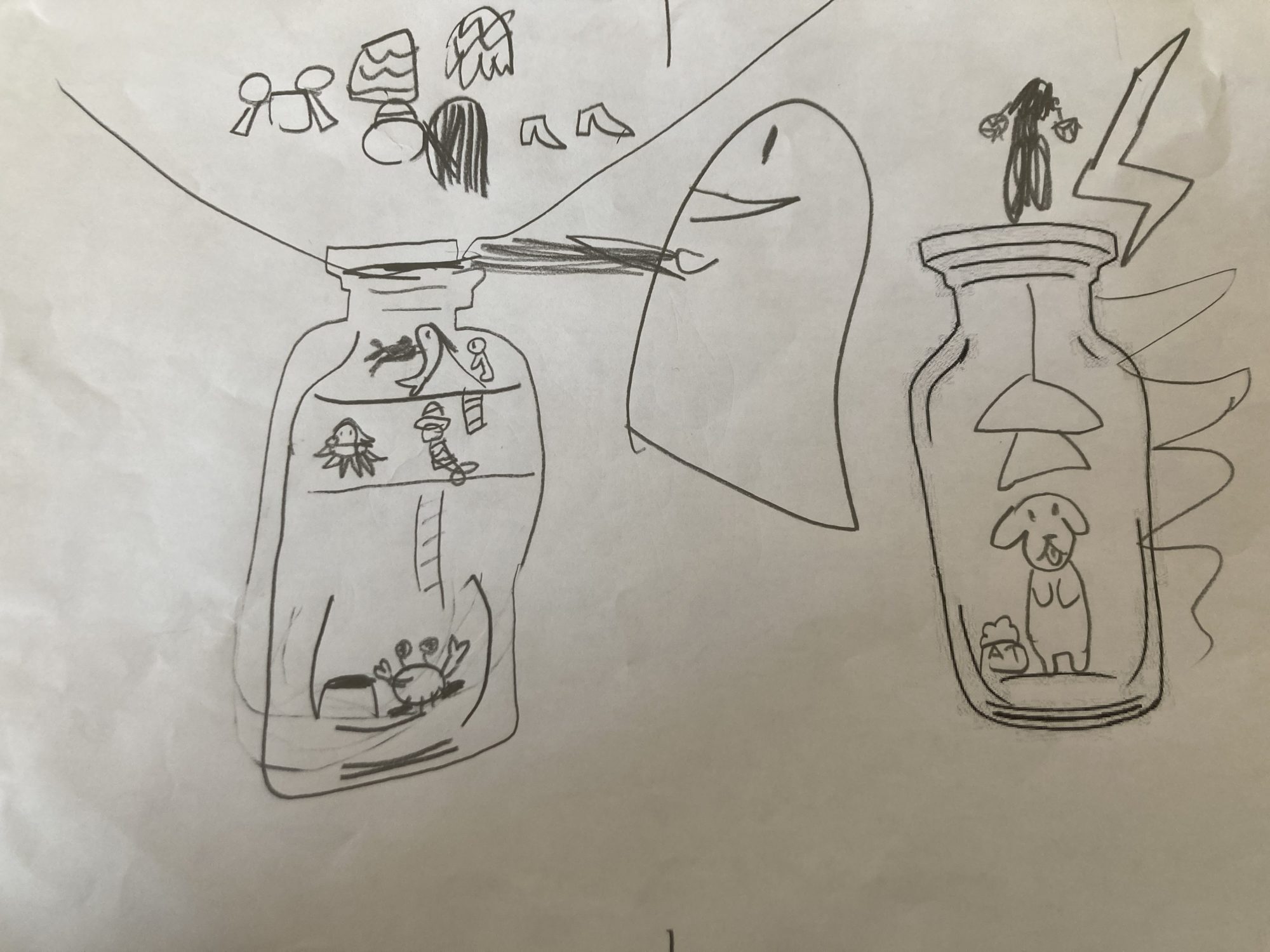 すごい!しっかり見てかくことができてる上にオリジナルの物語まで!