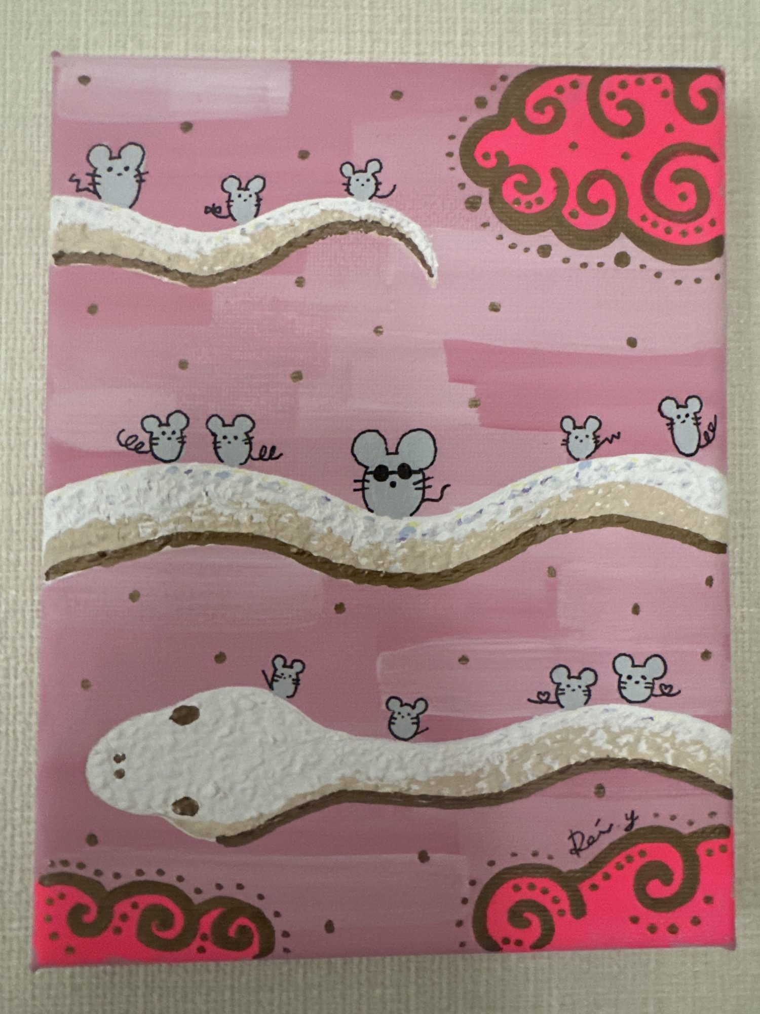 れい先生 先生2025年4月7日 9:37 PM まさと先生、コメントありがとうございます(^^) アクリル絵の具にジェルメディウムを混ぜ凸凹にすることでヘビの皮の質感を表現してみました!! 実は白い皮の下にも色があり、実物はよーく見ると色とりどりになっています。 ログインして返信する ↓