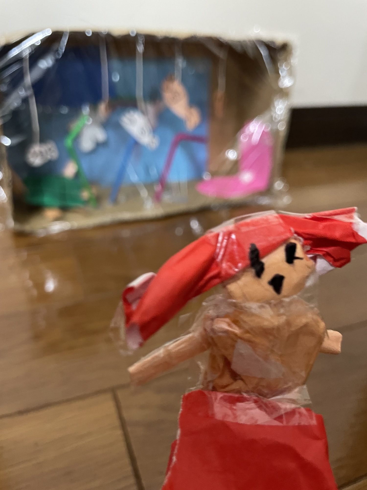 ストローやひも、ダンボールにおりがみ、たくさんのそざいを つかって すっごい さくひん できちゃいましたね