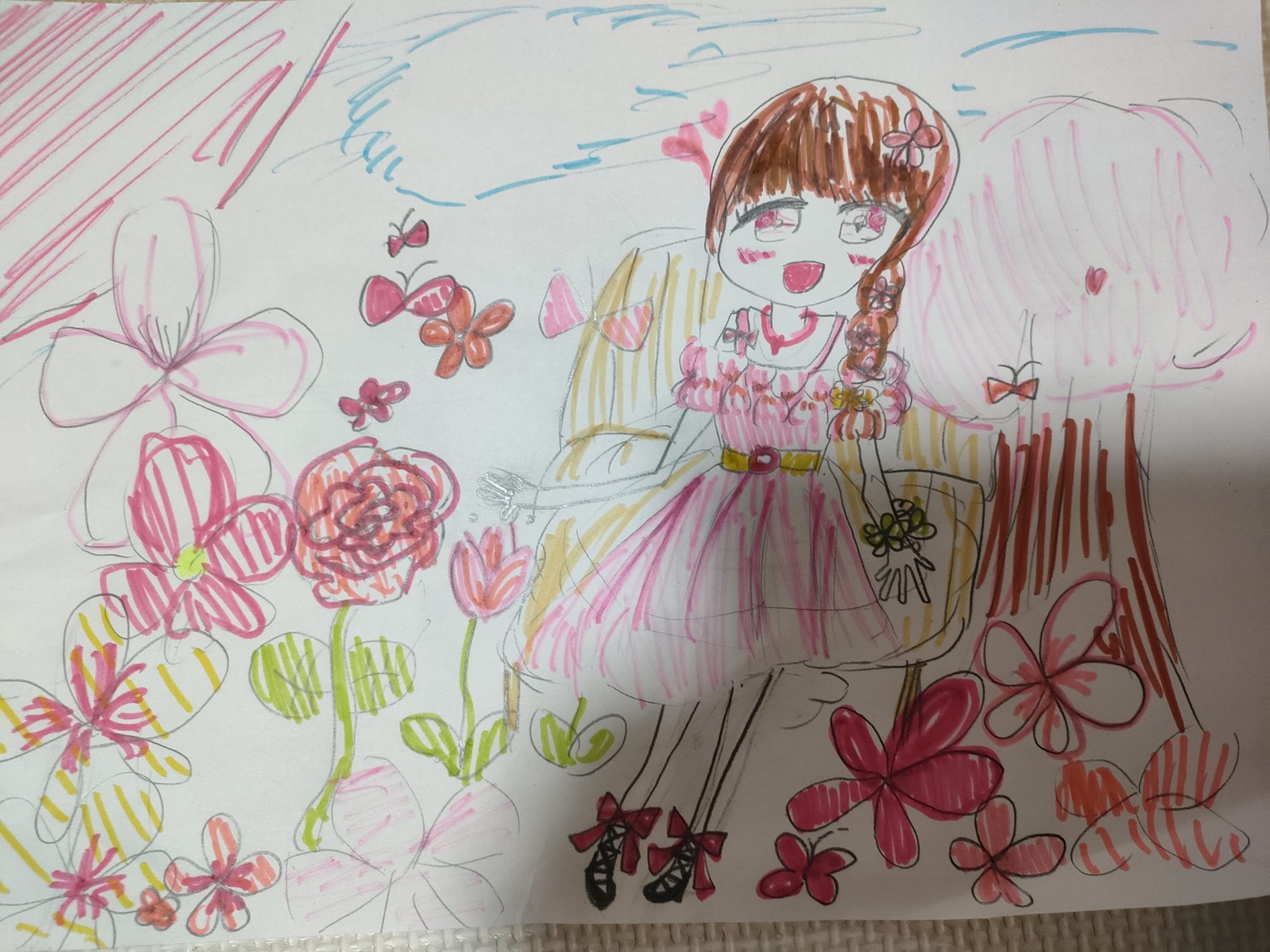 作品「お花畑の女の子」、とても素敵ですね!🌸👧