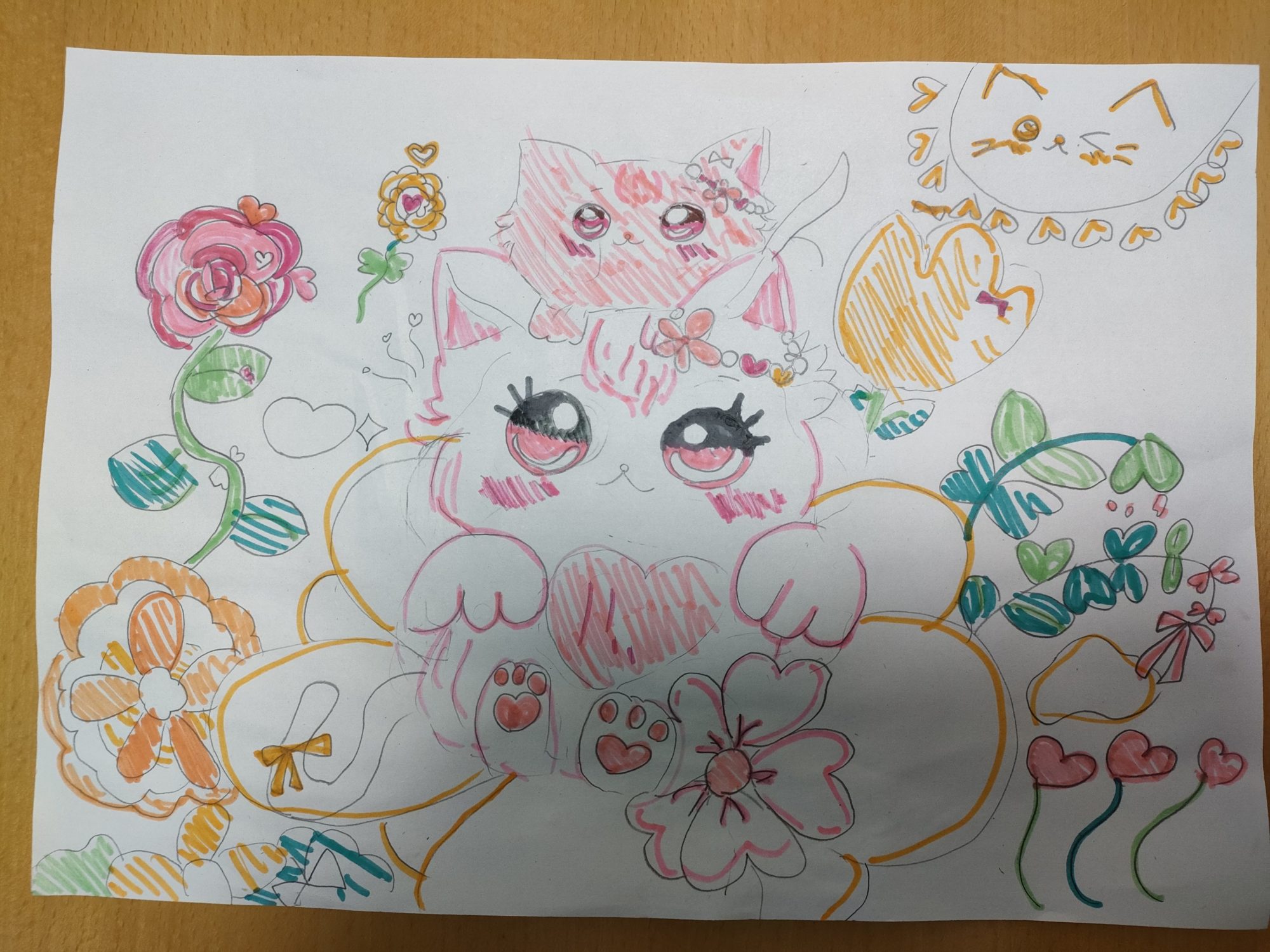 かな先生 先生2025年4月2日 3:47 PM かわいいーです! 猫ちゃんたちもかわいいし、お花のデザインも素敵です 葉っぱもかわいい 右上のハートがたくさん周りにある猫ちゃんが太陽みたいにサンサンでいいですね ログインして返信する ↓