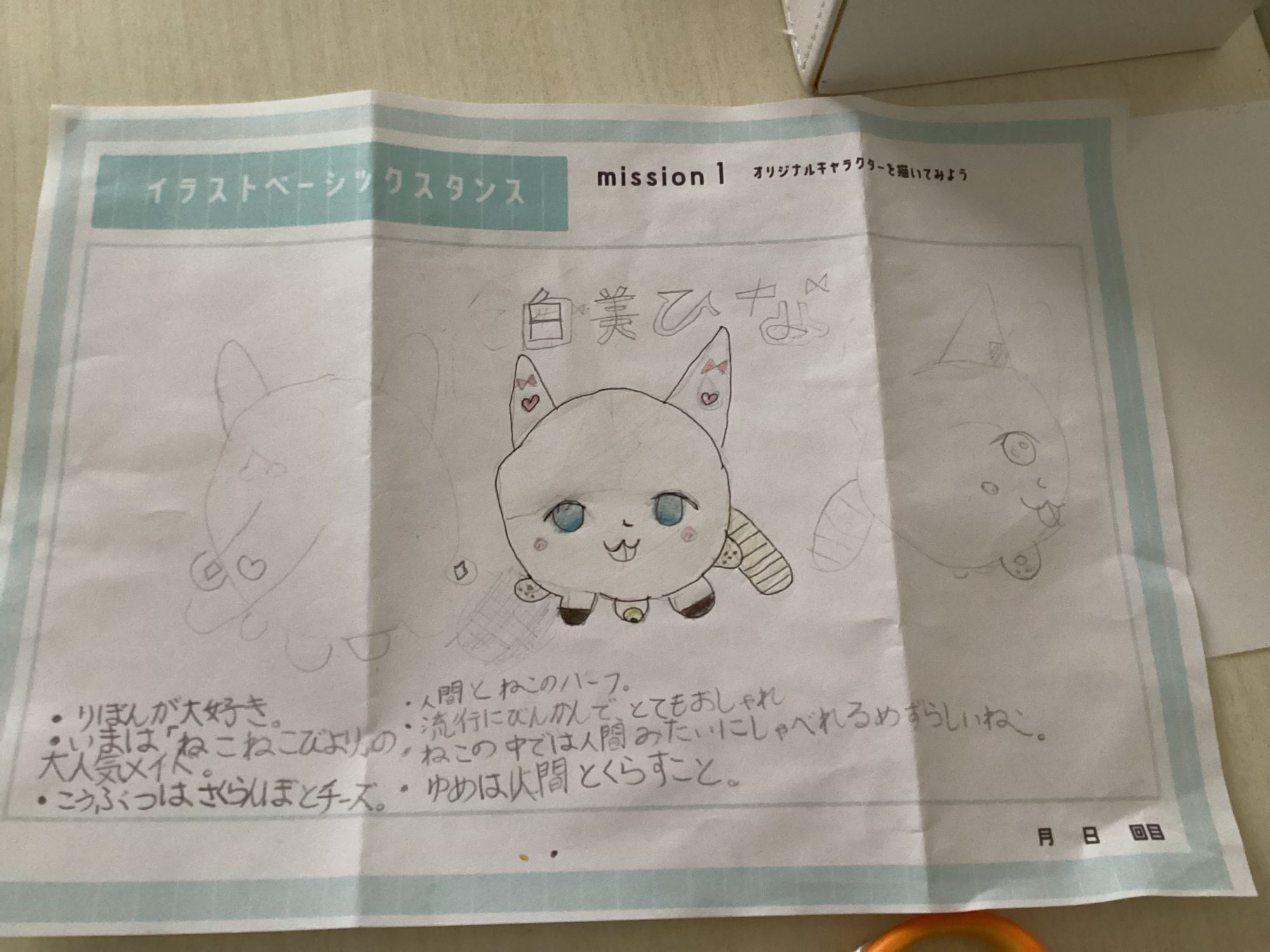 初めてのレッスンで、こんなに素敵なオリジナルキャラクターを描けるなんて、本当にすごいですね。