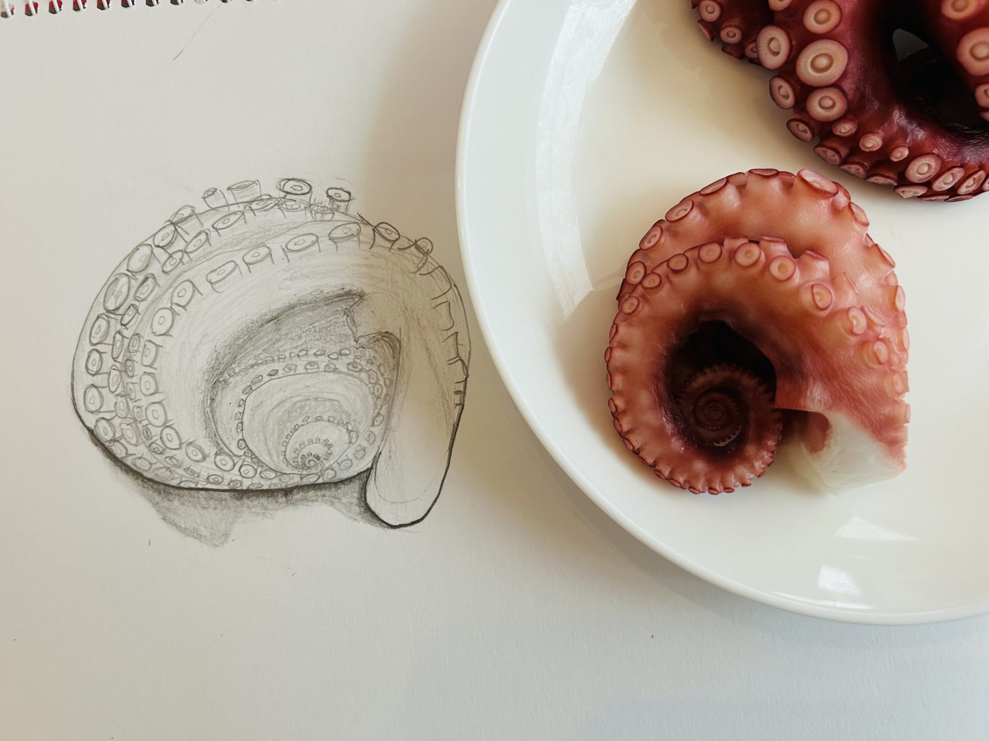 吸盤の向きも、タコの足が曲がるのと同時に傾いていくから、観察するところがたくさんで大変だったと思います。