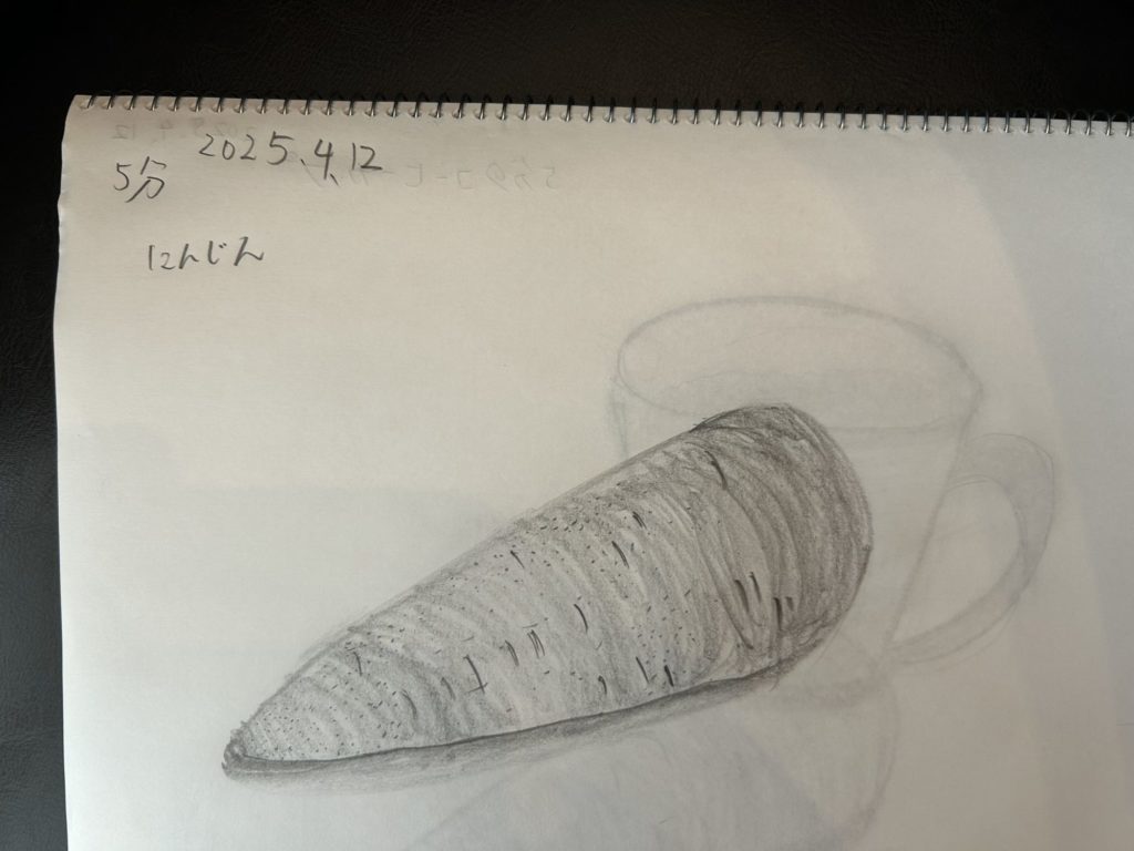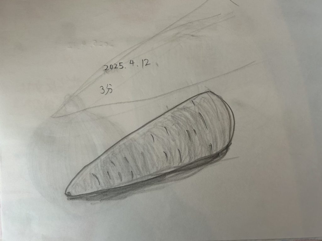 短い時間で描いたにんじん、たまねぎも、形がとてもしっかりととれていて、目の前にあるのが想像できる!