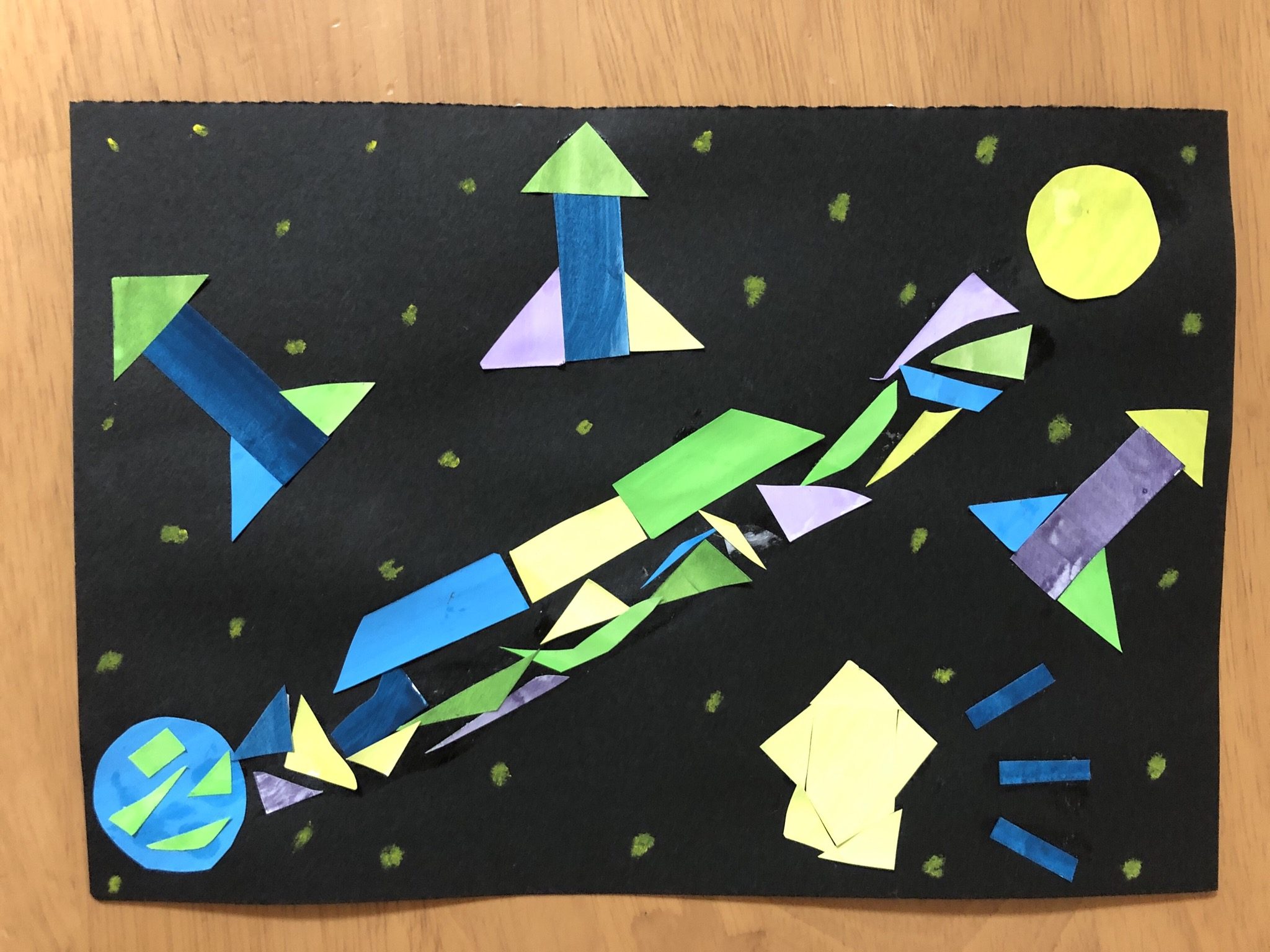 はづきせんせい チャイルドアートサポーター2020年5月5日 4:39 PM おりがみがキラキラ輝いているすばらしい作品だね!! 本当に、うっとりしちゃうくらいきれいで、ドキドキしました。 黒の画用紙に、おりがみを切って貼っているのを、楽しんでくれているのが分かります!! さつまいもロケットもおもしろいなぁ。 本当にとんでいたらいいな★ ログインして返信する ↓