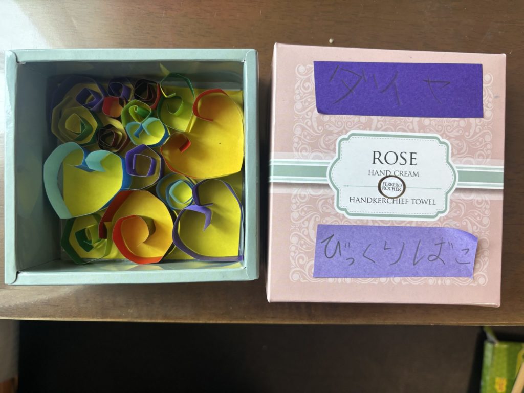 キラキラした折り紙で作れば宝石箱のようになるかな、と思ってこのタイトルにしたよ