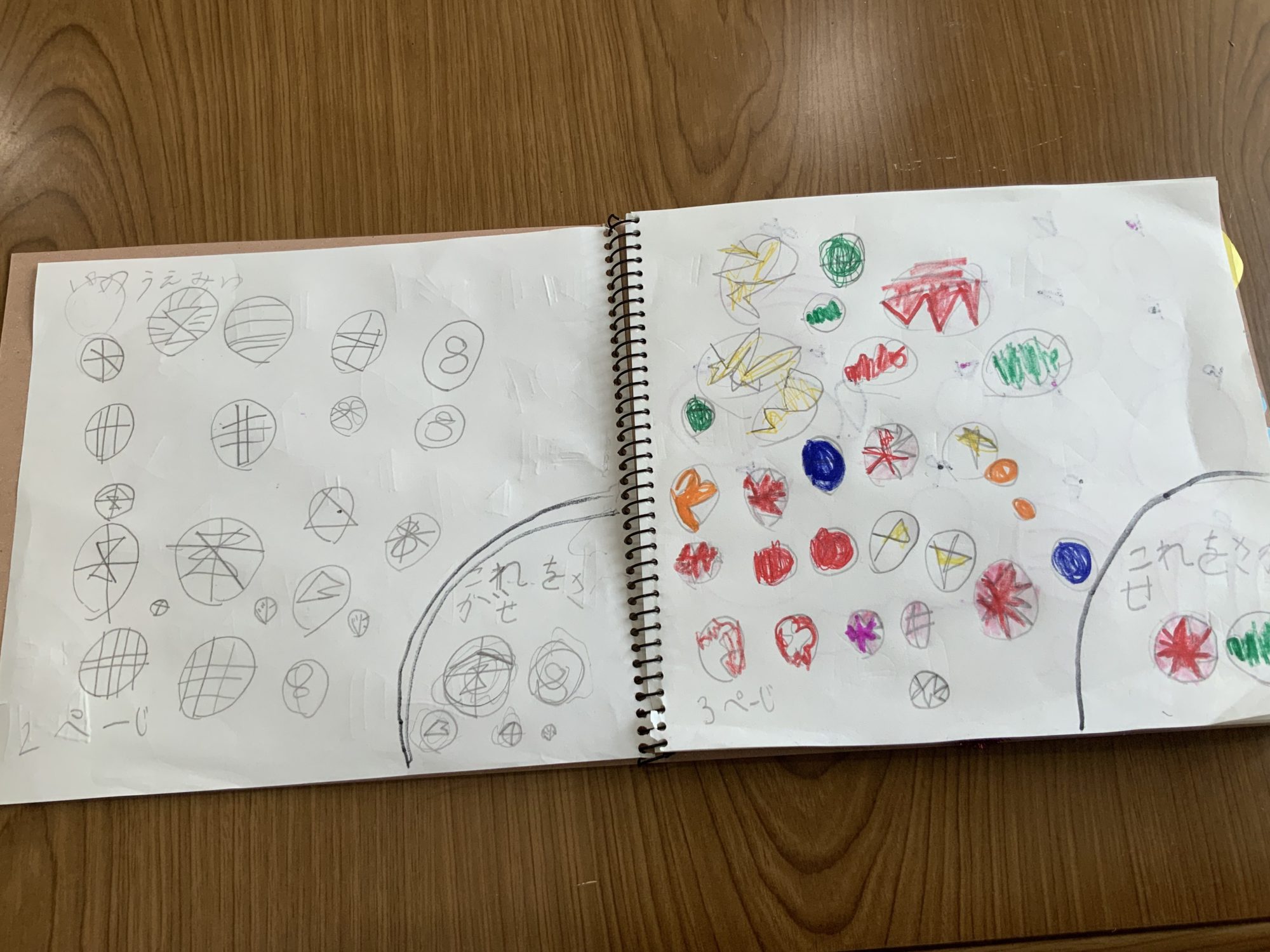 きくちわかこ 先生2025年5月17日 5:04 PM 今日はレッスンに来てくれてありがとう! 全部で3ページも!かいたんだね!!✨ 2まい目のしゃしんの、右がわは、ビー玉をかいたのかな? カラフルできれい!でも、トゲトゲのもよう、にているのがたくさんで、見つけるのがむずかしい…!! どれだ〜〜!👀😂 ログインして返信する ↓