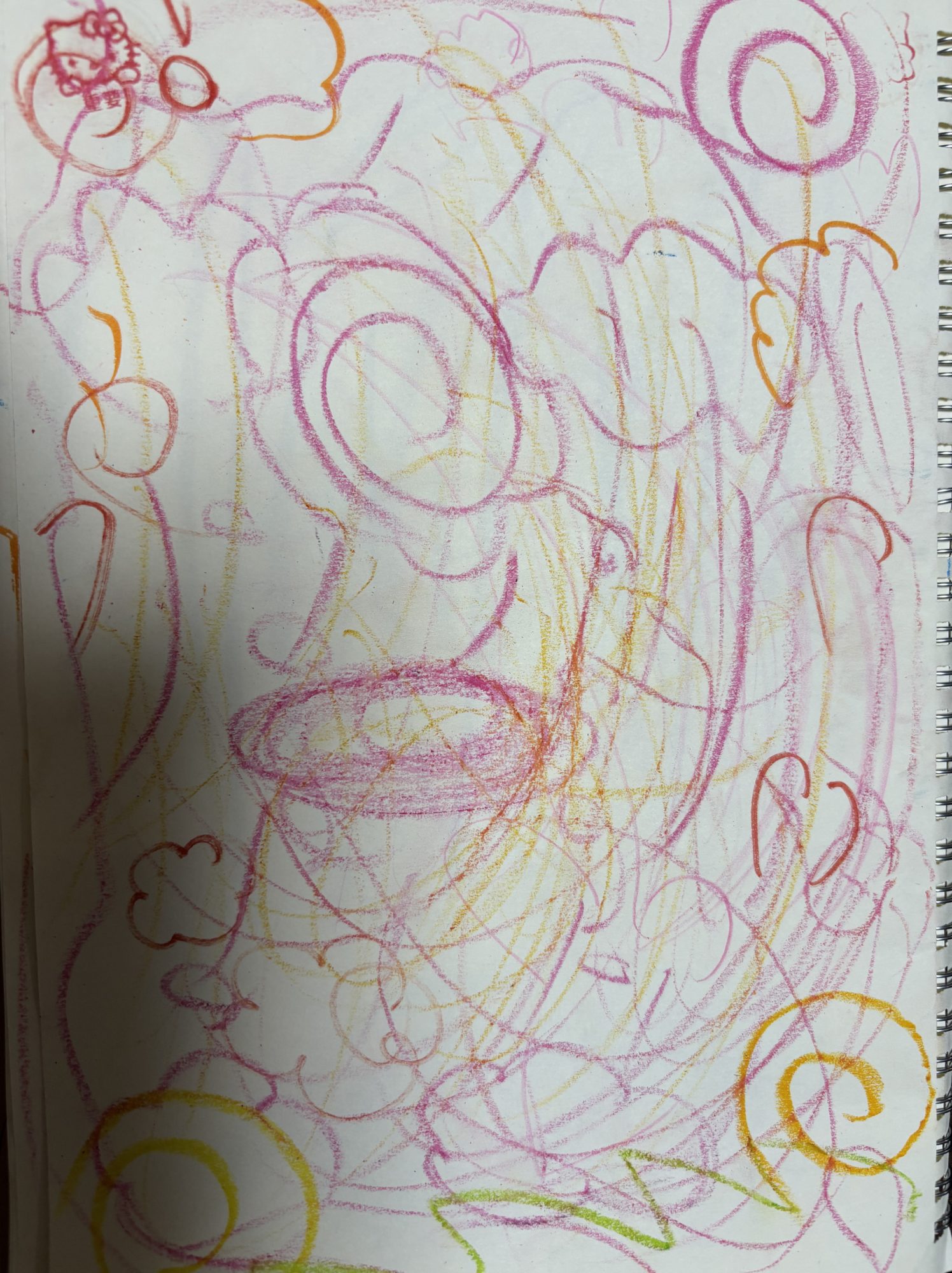 とってもウキウキな気持ちが、くるくるまわる線や、明るい色から伝わってきたよ〜!