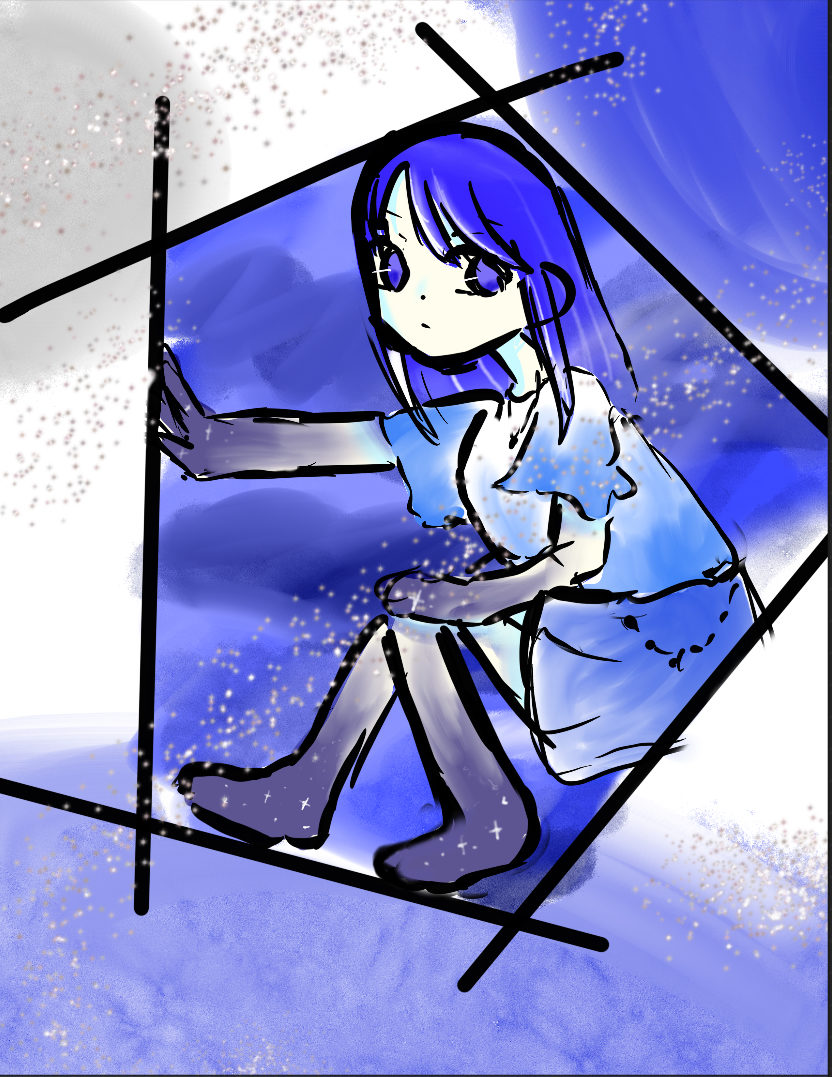 線の表現や背景のにじみ、そして女の子の透明感のある色使いからも、感性の豊かさがよく伝わってきました。背景に奥行きを出すような演出も素敵です🌌