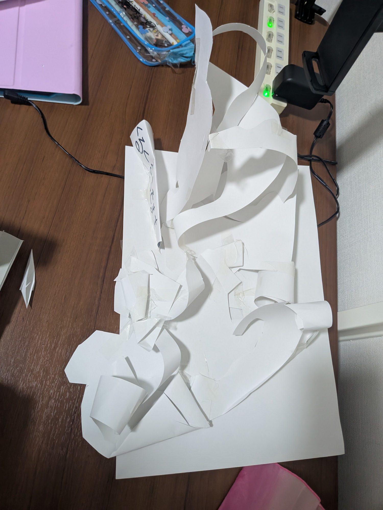 わかめせんせい 先生2025年6月17日 10:22 AM まいまいさん 最初にひとつ作って、それをどんどんつなげていくアイデアがすばらしいね!🌀✨ 「つなげるところを頑張った」って書いてある通り、紙の流れがつながっていて、見ていてわくわくします😊 ぐるぐる、くるくる、風が通りぬけるような立体になっていて、風のインスピレーションを感じたよ🌬️ また新しい形、どんどん生み出していってね🎨 ログインして返信する ↓