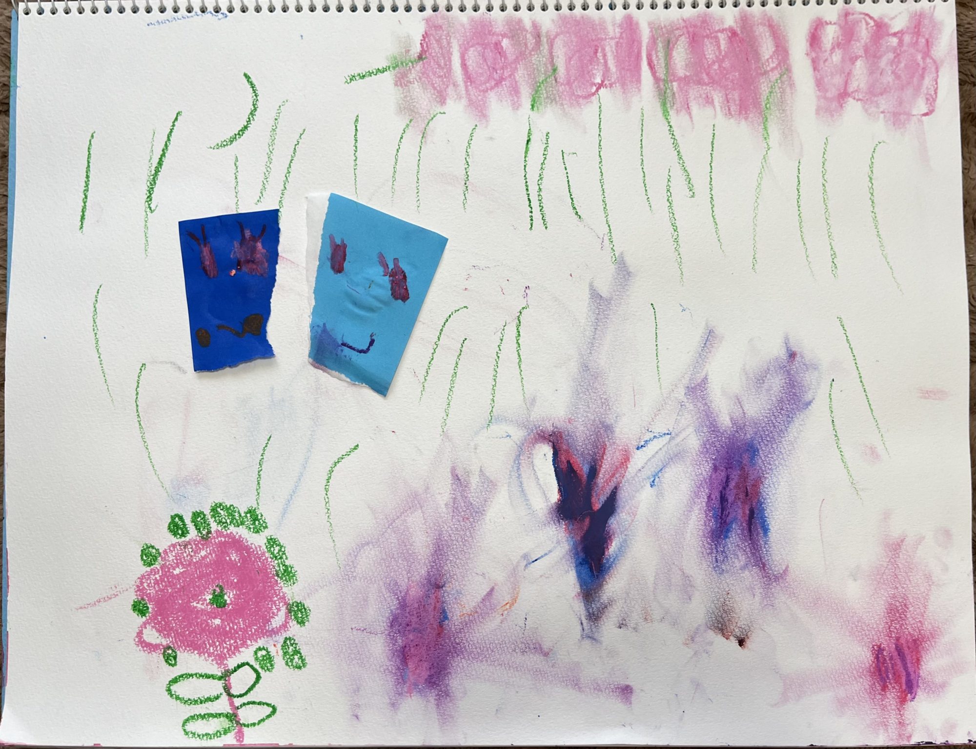 ふわふわで、色がまざりあってきれいなお花畑も、クレヨンの先を丁寧に使って描いたお花も、何度見てもいやされます💞