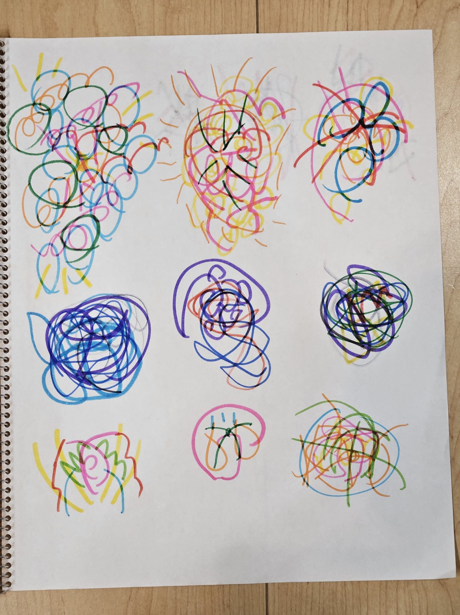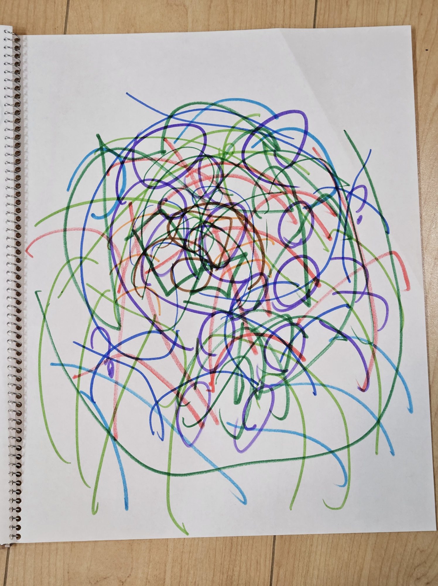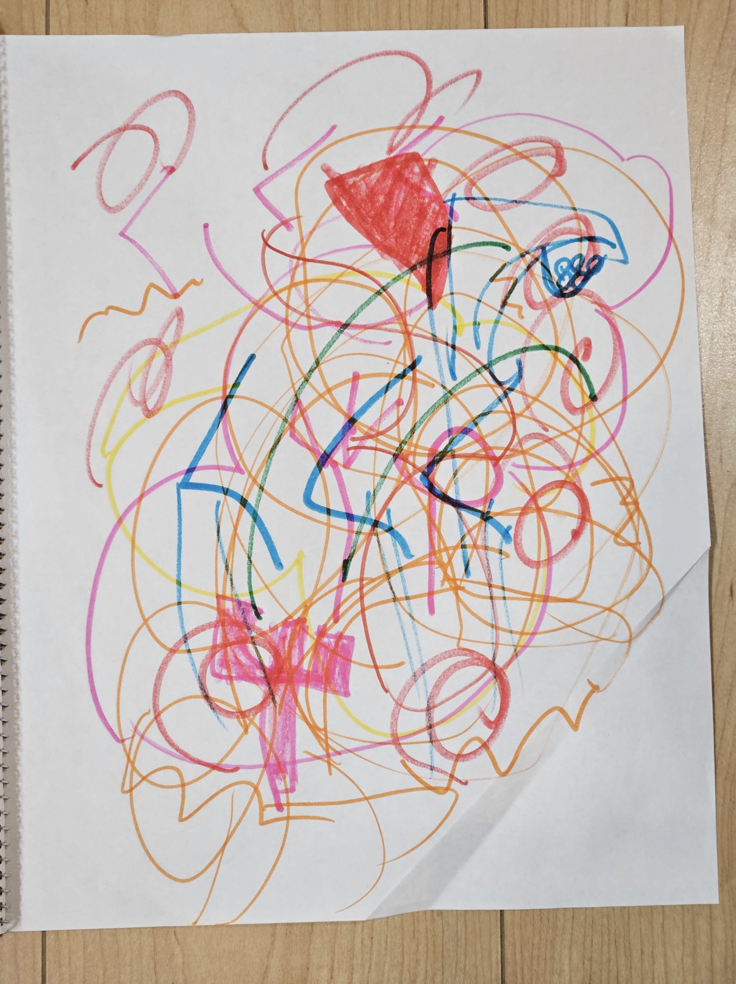 カラフルな線がまるでダンスしているみたい!yumekoさんの「いろいろな気持ち」が、元気いっぱいに紙の上をかけまわっていて、とっても楽しく見せてもらいました🎶✨