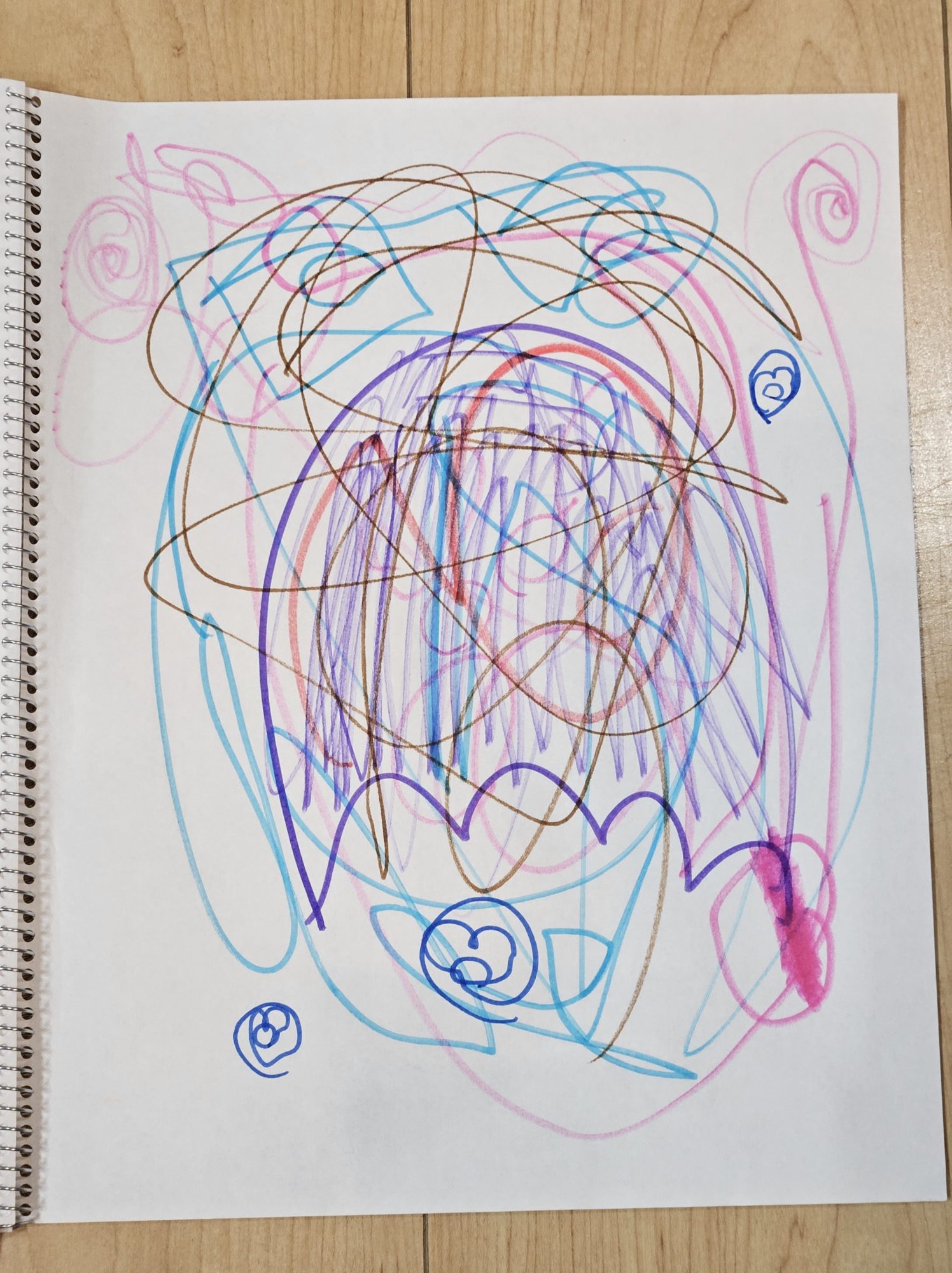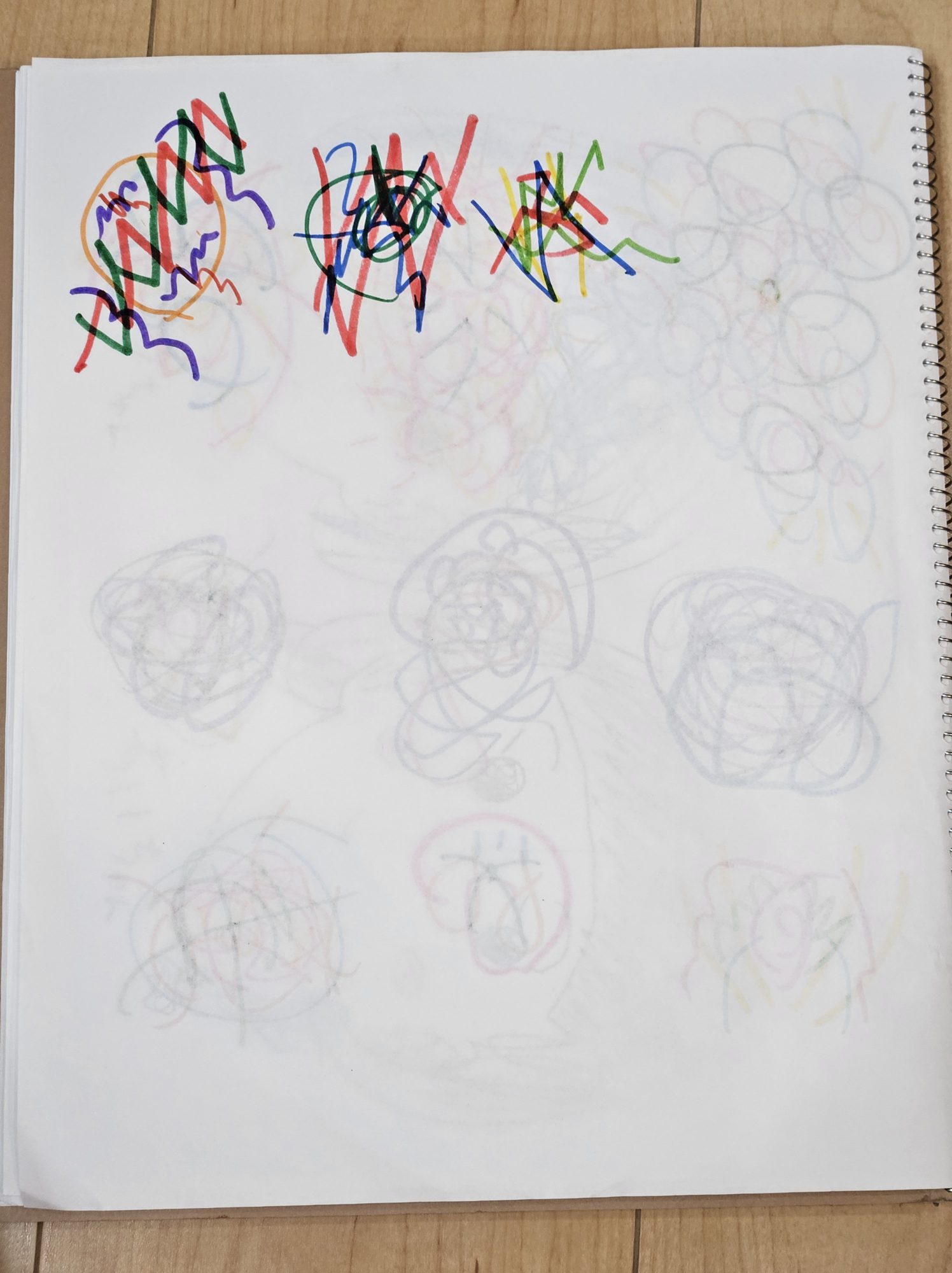 yumekoちゃんこんにちは!くみせんせいです!元気でたのしくお絵描きしている様子が伝わってとってもうれしいです!くるくる、とげとげ、つんつん、いろんな線の形で、気持ちがわかるようで面白いね!!