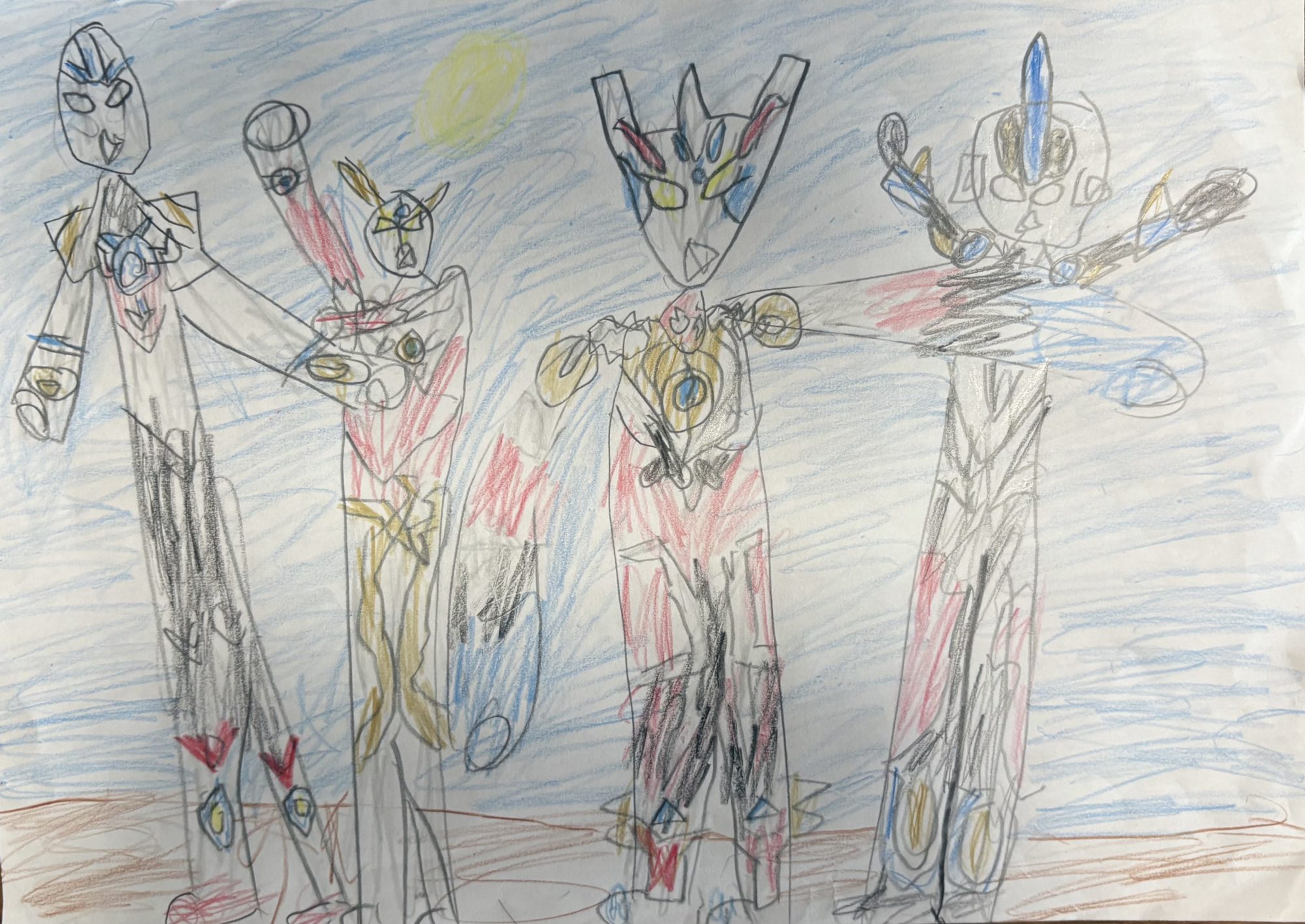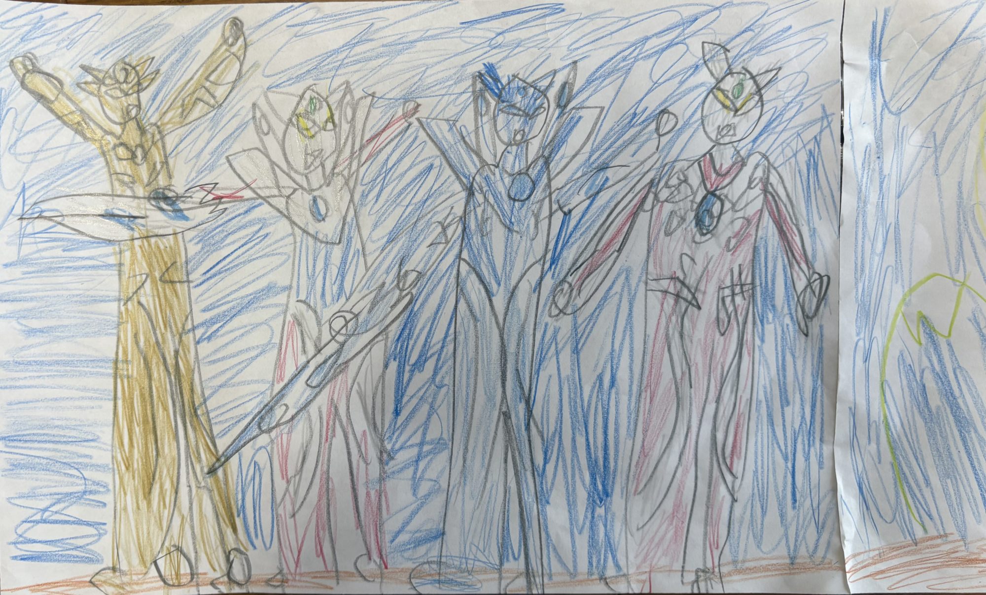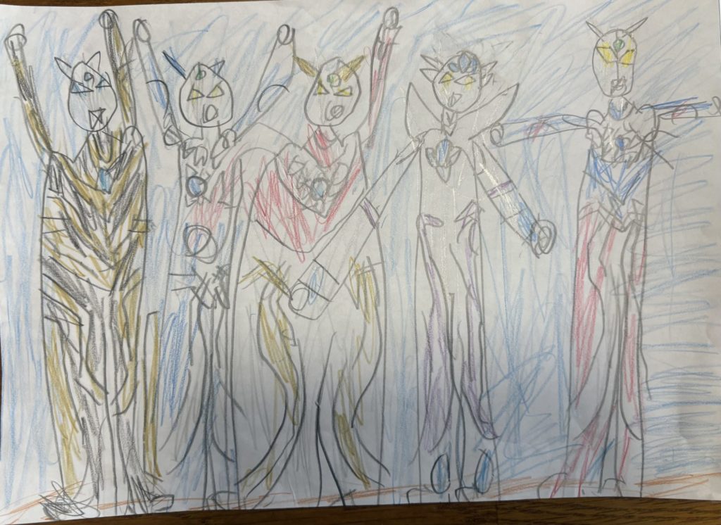 わかめせんせい 先生2025年6月29日 1:16 PM たくさんのウルトラマンがそろっていて、とってもにぎやかでかっこいいね! A4用紙を4まいつなげて、ひろびろと描いたスケールの大きさにびっくりしました✨ ポーズや色のちがいもしっかり見ていて、それぞれのウルトラマンへの愛が伝わってきます。 それから、「ウルトラマンの名前わかりますか?」という質問、ごめんなさい🙇♀️ わかめさんはおじさんなので昔のウルトラマンしかわかんないなあ、、、、 2枚目の真ん中が、ひょっとしてウルトラマンタロウ?? ログインして返信する ↓