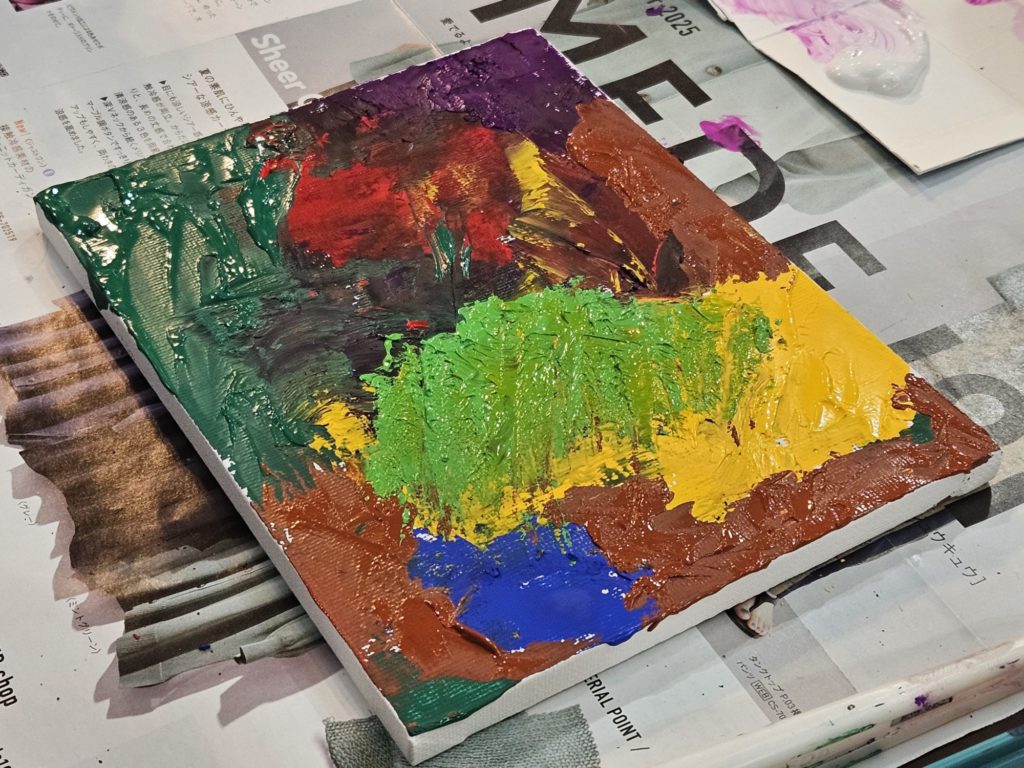 カラフルな方はナイフだけでキャンバスに直接絵の具を出して描くのが初めてですごく楽しかったです!