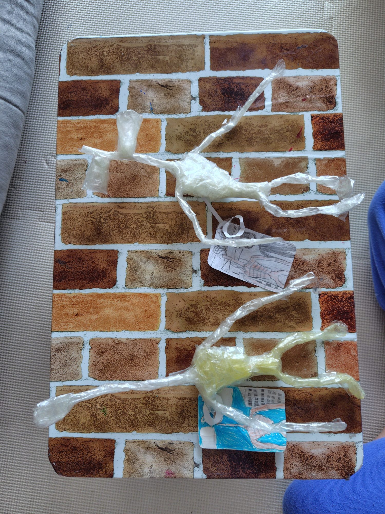 セロテープでの製作のほか、アルミホイルで人型の模型も作っております☆ぜひ先生にアルミホイルの作品も見てほしいと喜んでおります(≧▽≦)