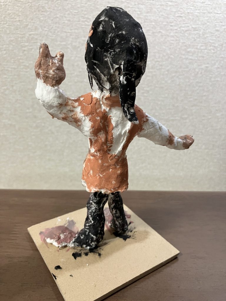 わかめせんせい 先生2025年7月11日 9:52 PM なんて素直でチャーミングな「じぶん」! ポーズや表情から、うれしい気持ちや前向きな気分がじわっと伝わってきました。特に手のかたちや足の位置からは、「ここにいるよ!」と世界にむかって明るく立っている感じがして、とてもいいです。 髪の毛のボリュームや服の色の塗り方など、細かい部分までていねいに観察しながらつくったことがよくわかりますね。 きっとつくっている間、いろんな「じぶん」を見つめなおす時間にもなったのではないでしょうか? この作品を通して「じぶんの好きなところ」って、どんなところだと感じたかな?教えてください。 ログインして返信する ↓
