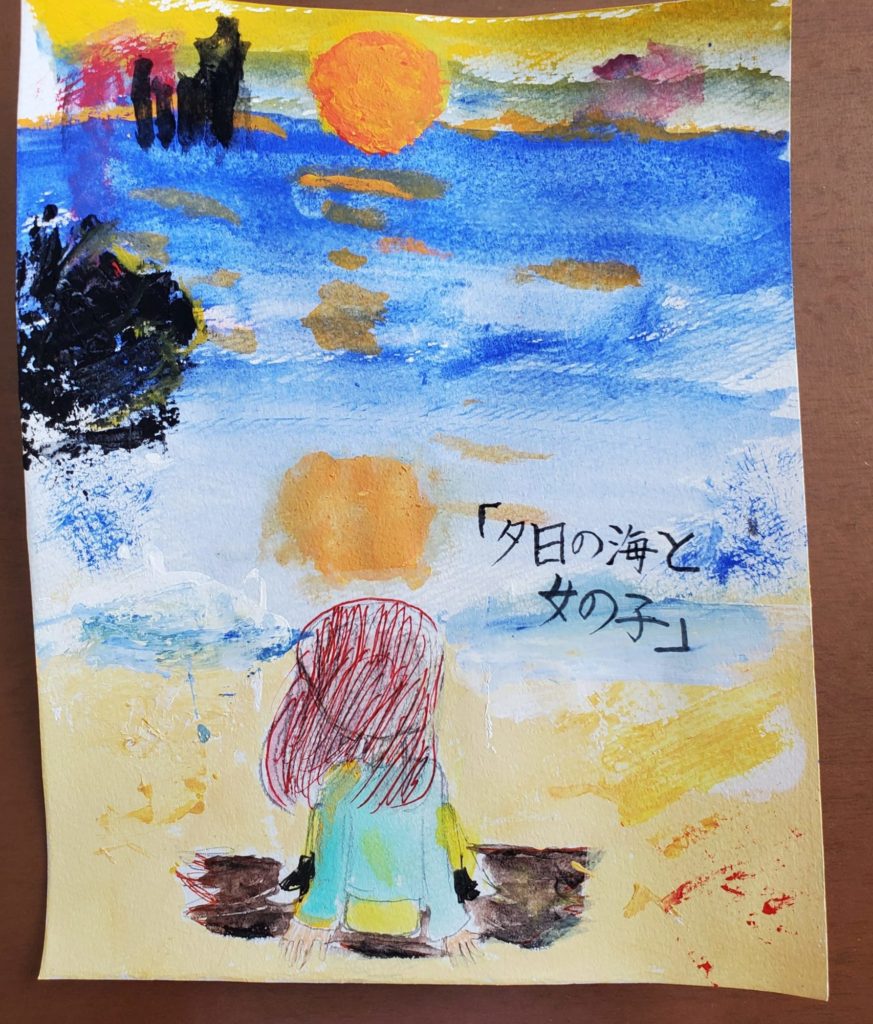 そして2枚目、「夕日の海と女の子」では、静かな時間が流れていて、心がスッと落ち着くような印象を受けました。