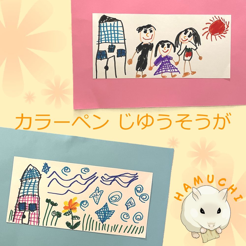 お花やおうち、うずまきやしましまも上手にかけていて、たのしそうな気もちがつたわってきました。
