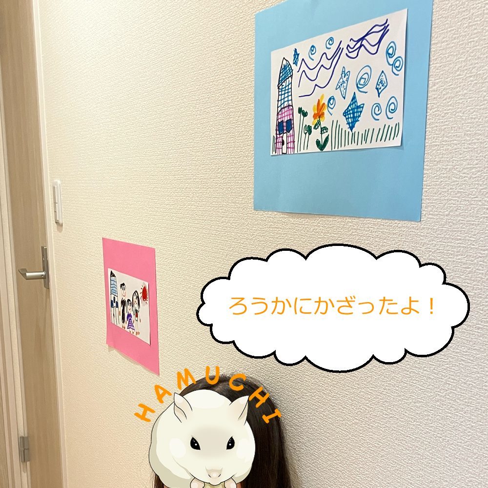 かいたえはろうかにかざったよ。