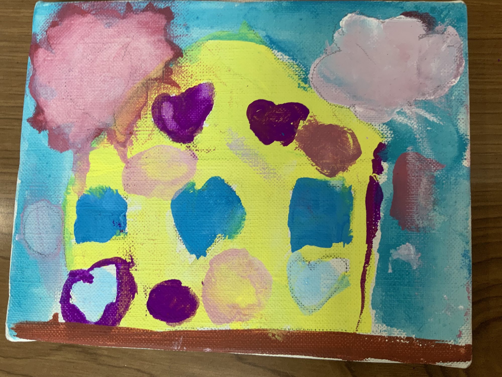 アクリル絵の具のあつぬりや、ぬりかさねもじょうずにできていて、いろのバランスもとってもきれいです。