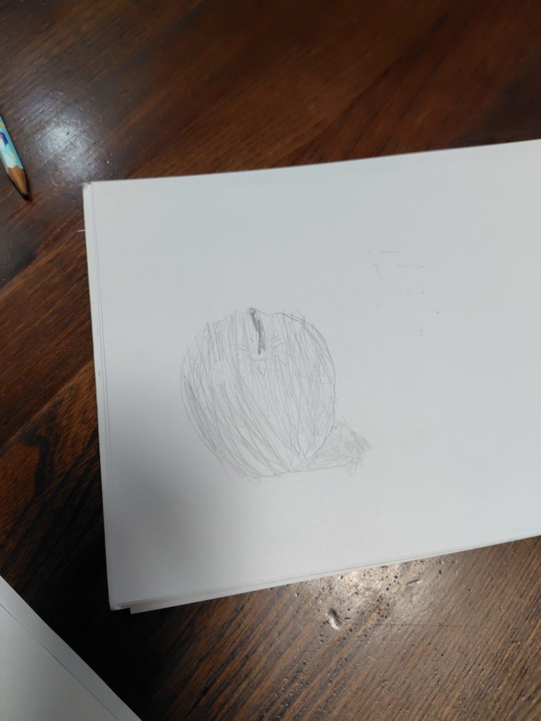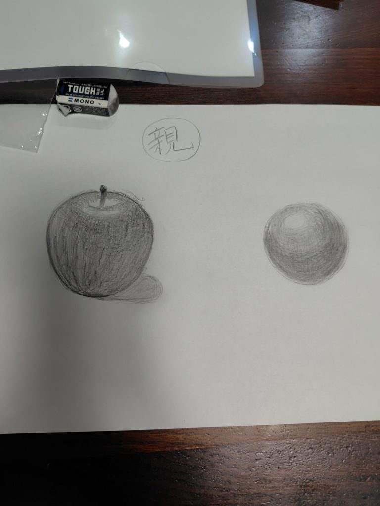 そして──親御さんの作品も、りんごの模様もリアルですし、丸みや、光と影の移り変わりがとても丁寧に表現されていて、球体もやわらかい光をまとって見えるような仕上がりでした。拝見できて嬉しいです。