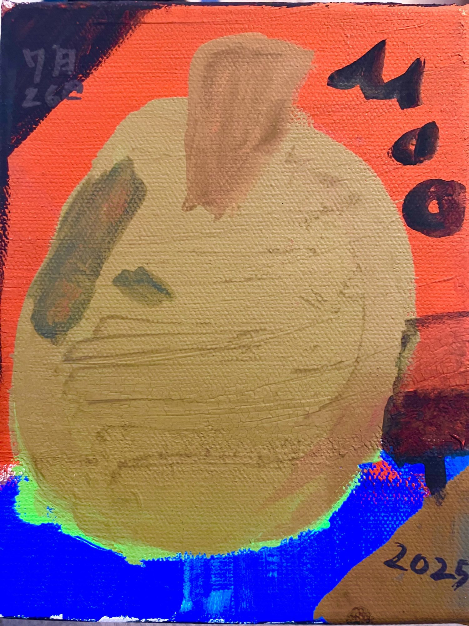 背景の赤と青のコントラストが強くて、「この梨、絶対おいしいよ!」とスーパーのポップみたいに主張してきますね。