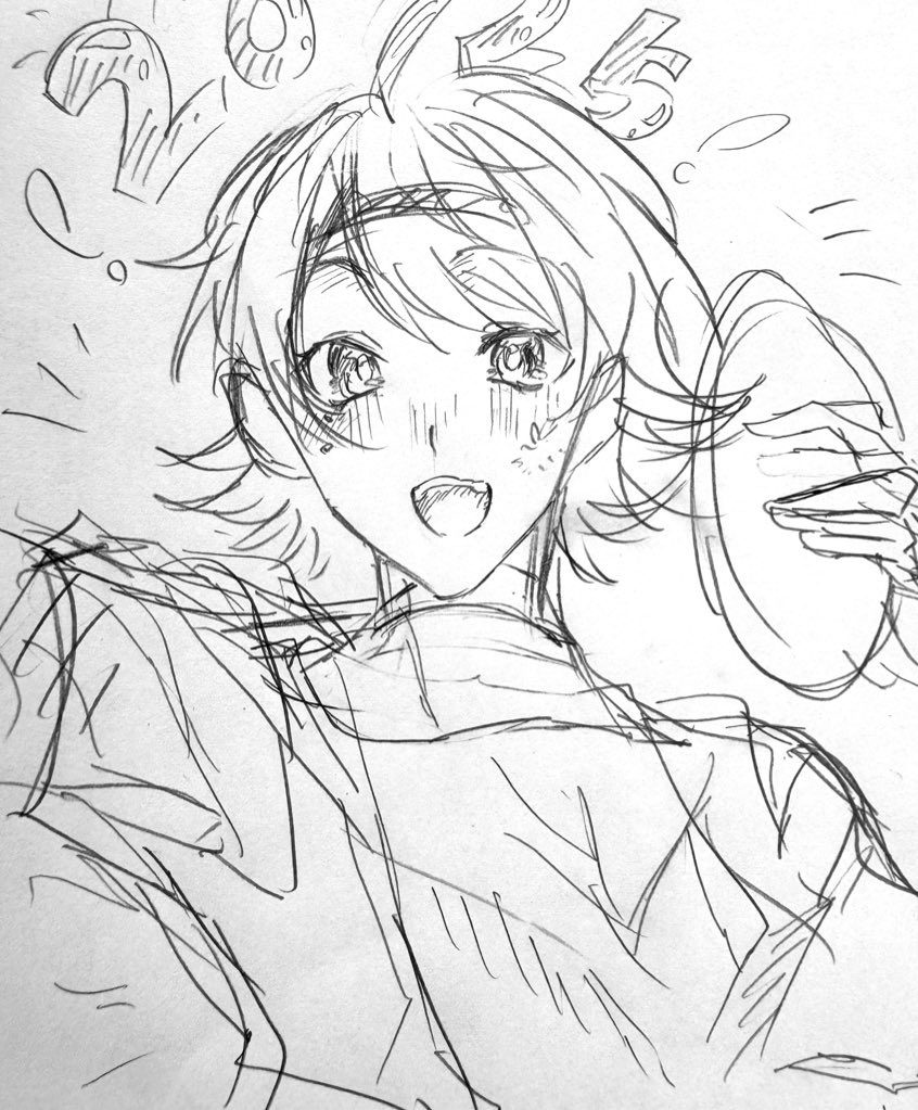 髪の流れや表情の描き方がとても生き生きしていて、「楽しかったー!」という気持ちがまっすぐ伝わってきました。目の輝きや口元の笑顔にも、キャラクターへの愛情がにじんでいて、見ているこちらも笑顔になってしまいます。