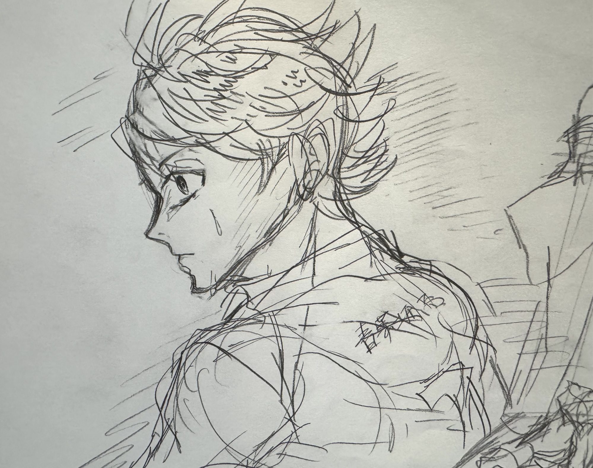 キャラクターの横顔と緊張感が、とてもよく伝わってくる一枚ですね。