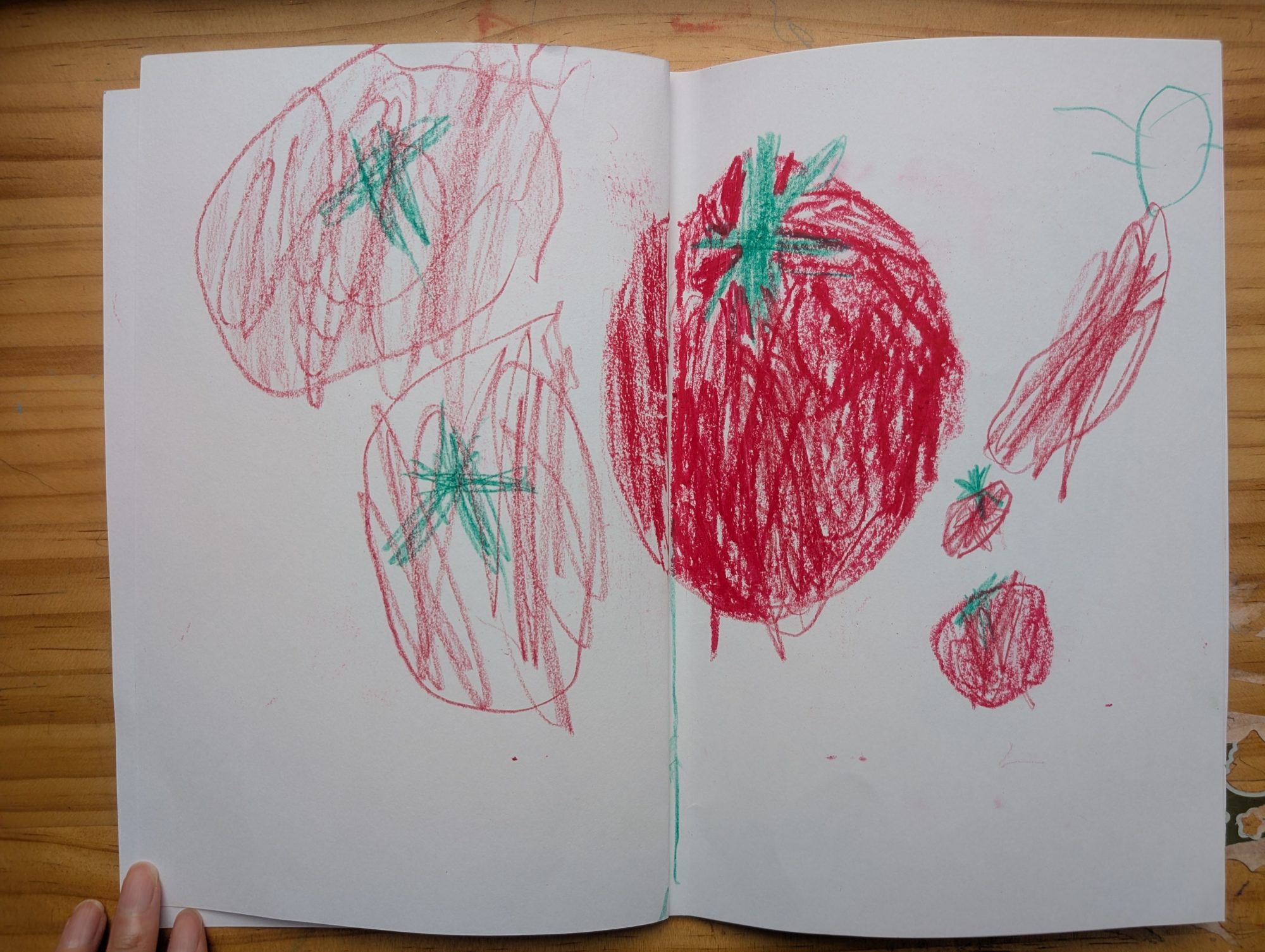 同じ形を何度も描くことで、どんどんトマトの特徴をつかんでいるのがわかりますよ。