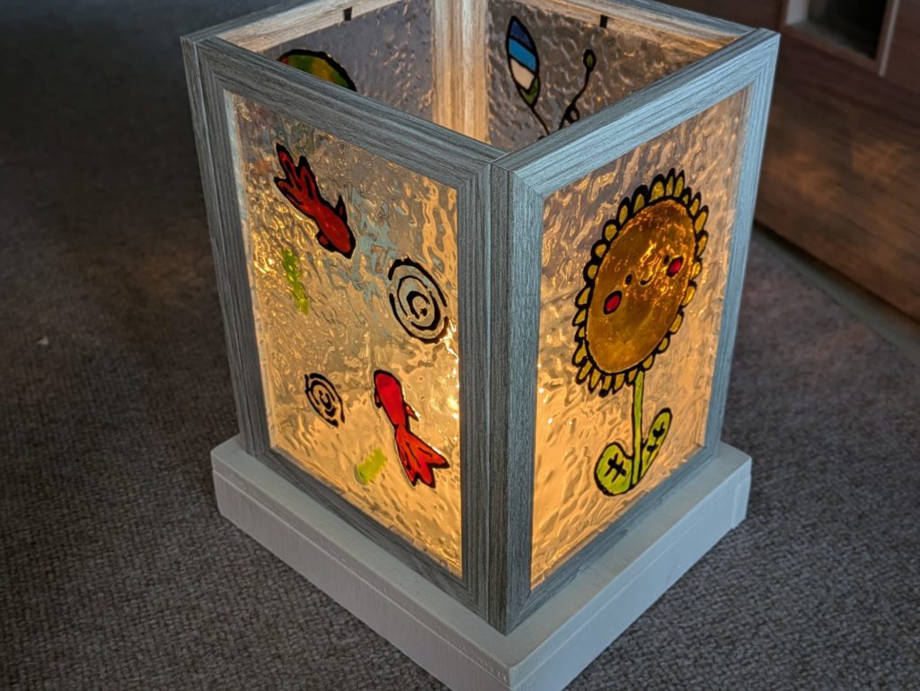 レジンでのすりガラス風仕上げは難しかったとのことですが、そのおかげでやわらかい光が広がり、幻想的な雰囲気になっています。お部屋に灯したら、きっと夏の夜をやさしく彩ってくれますね。