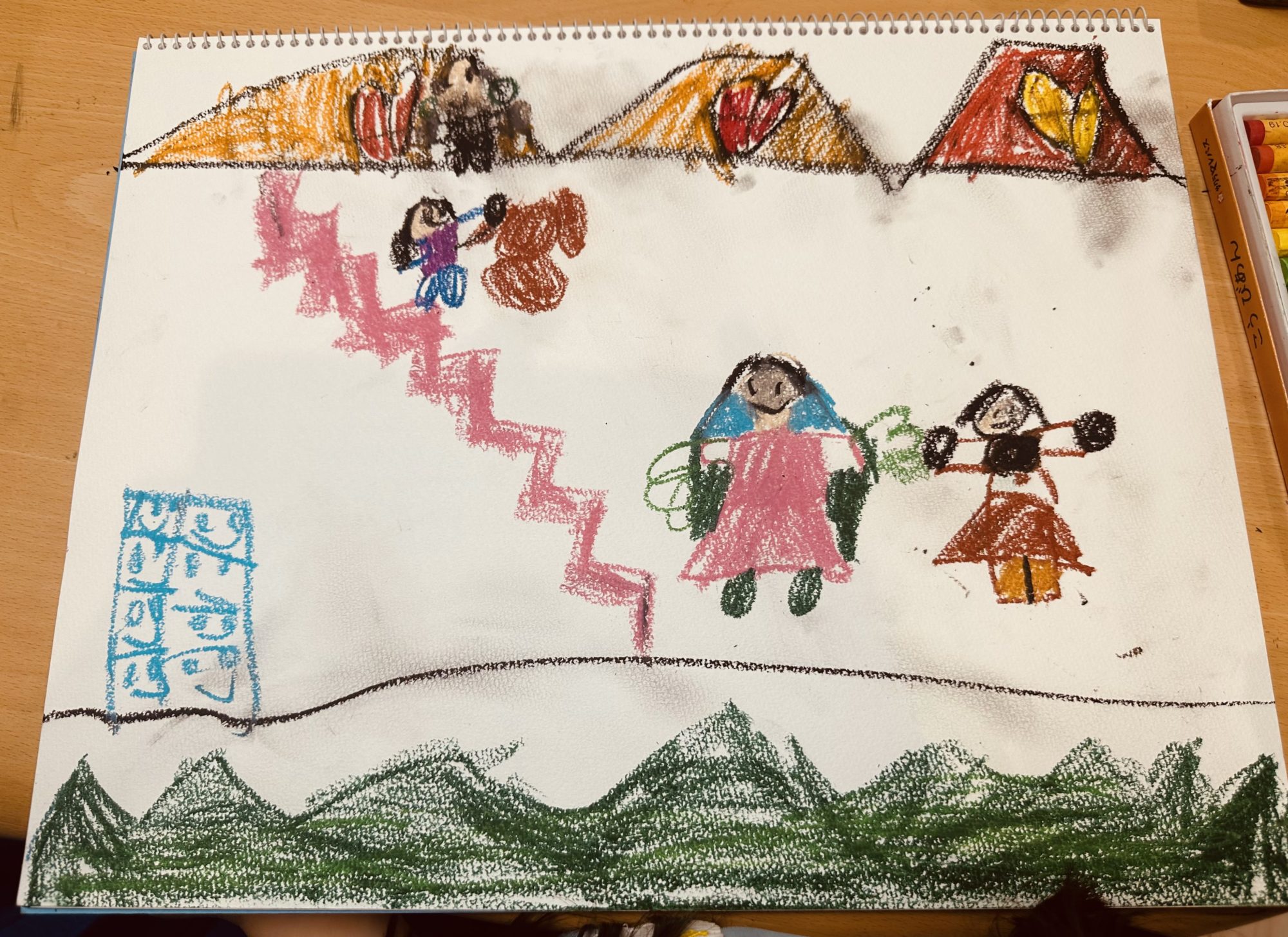 みいちゃんの絵からは、家族へのあたたかい気持ちと自由な発想がのびのびと表れています。ご家庭でも「どんなところが楽しいお家なの?」「お姉ちゃんの髪の色はどうして選んだの?」など、絵から広がるお話をぜひ聞いてあげてください。