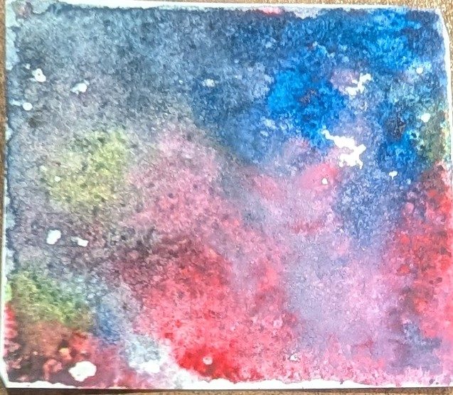 色の混ざり方が偶然にも美しい模様を生み出していて、「宇宙ってこんな色なのかもしれない」と想像をふくらませてくれます。