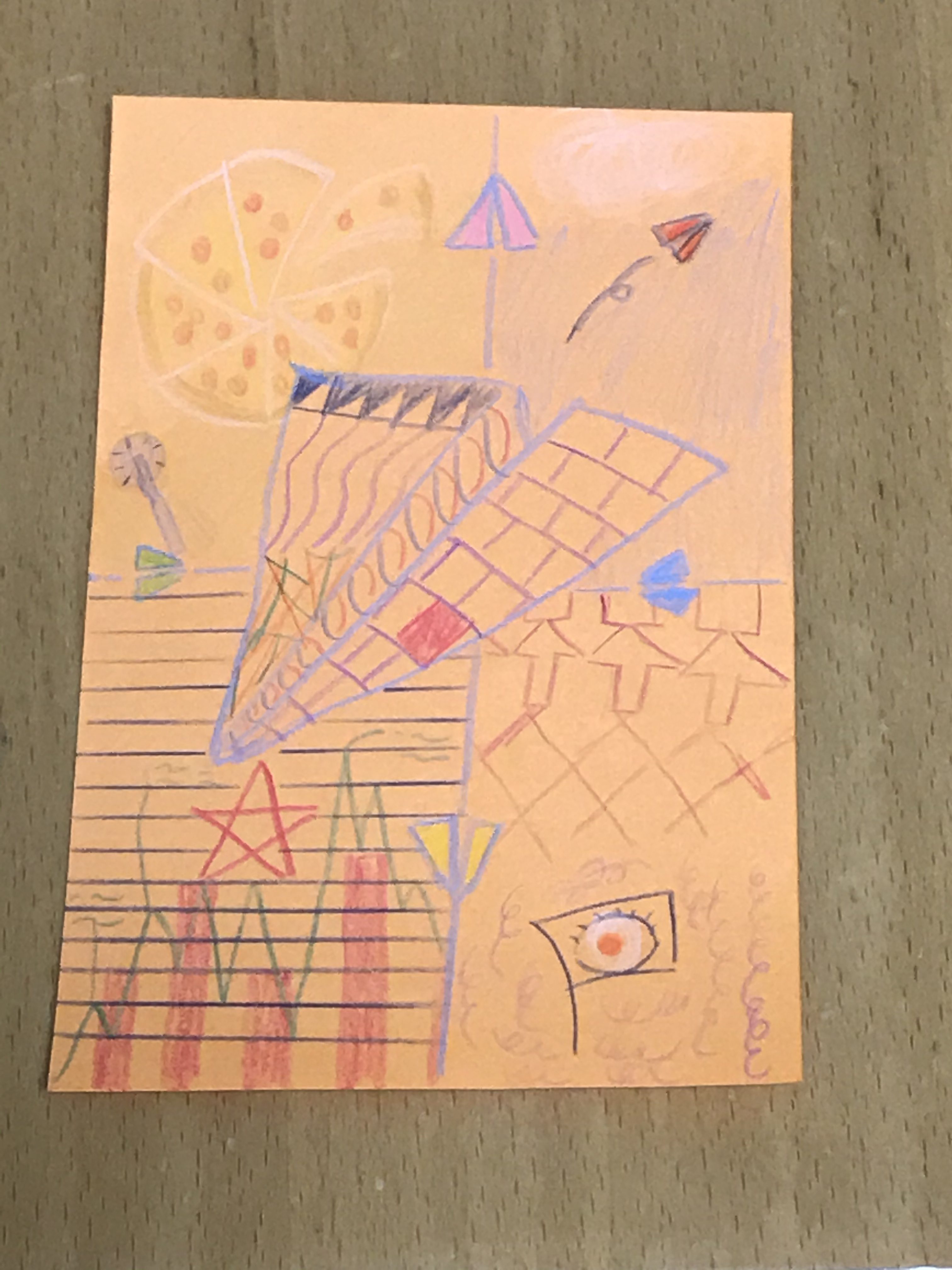 きとう 先生2020年5月5日 8:41 AM はるとくん!!いいですねぇ。。気楽に描いた軽い感じが素敵です。 間違ってたらごめんね。だけど ピザに紙飛行機、山、グラフ、旗、煙 4つに分けられていて、真ん中にいく紙飛行機と 外側にいく紙飛行機。面白いなぁ。。。。 はるとくんの頭の中ですね。不思議な世界。 ログインして返信する ↓