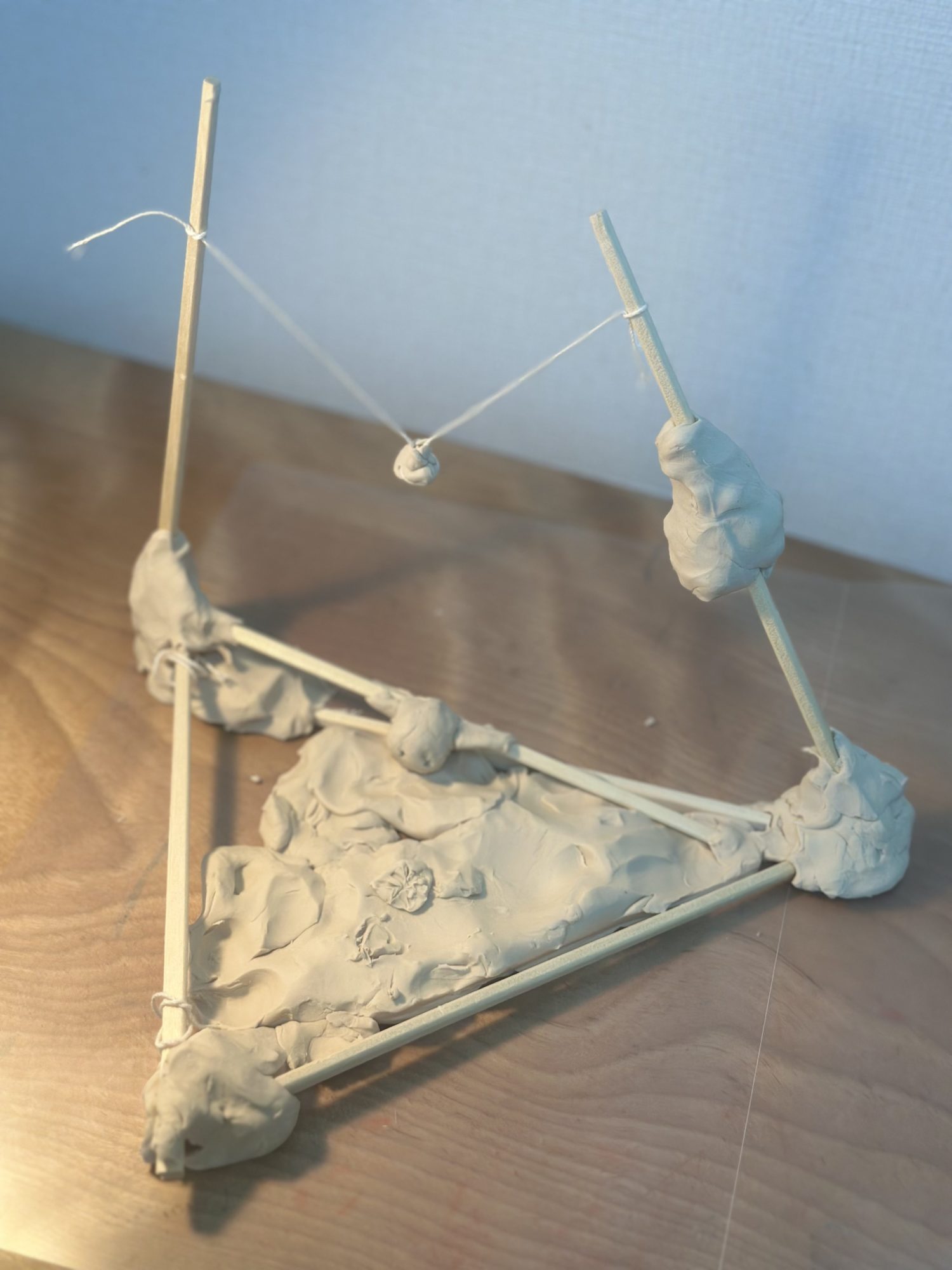 作っては壊し、直しては加える…その繰り返しが「自分の思った遊園地」をどう表現するかにつながります。作品の「トランポリン」「橋」「綱渡り」といったストーリーも、粘土を通して自由に発想が広がっている証拠です。