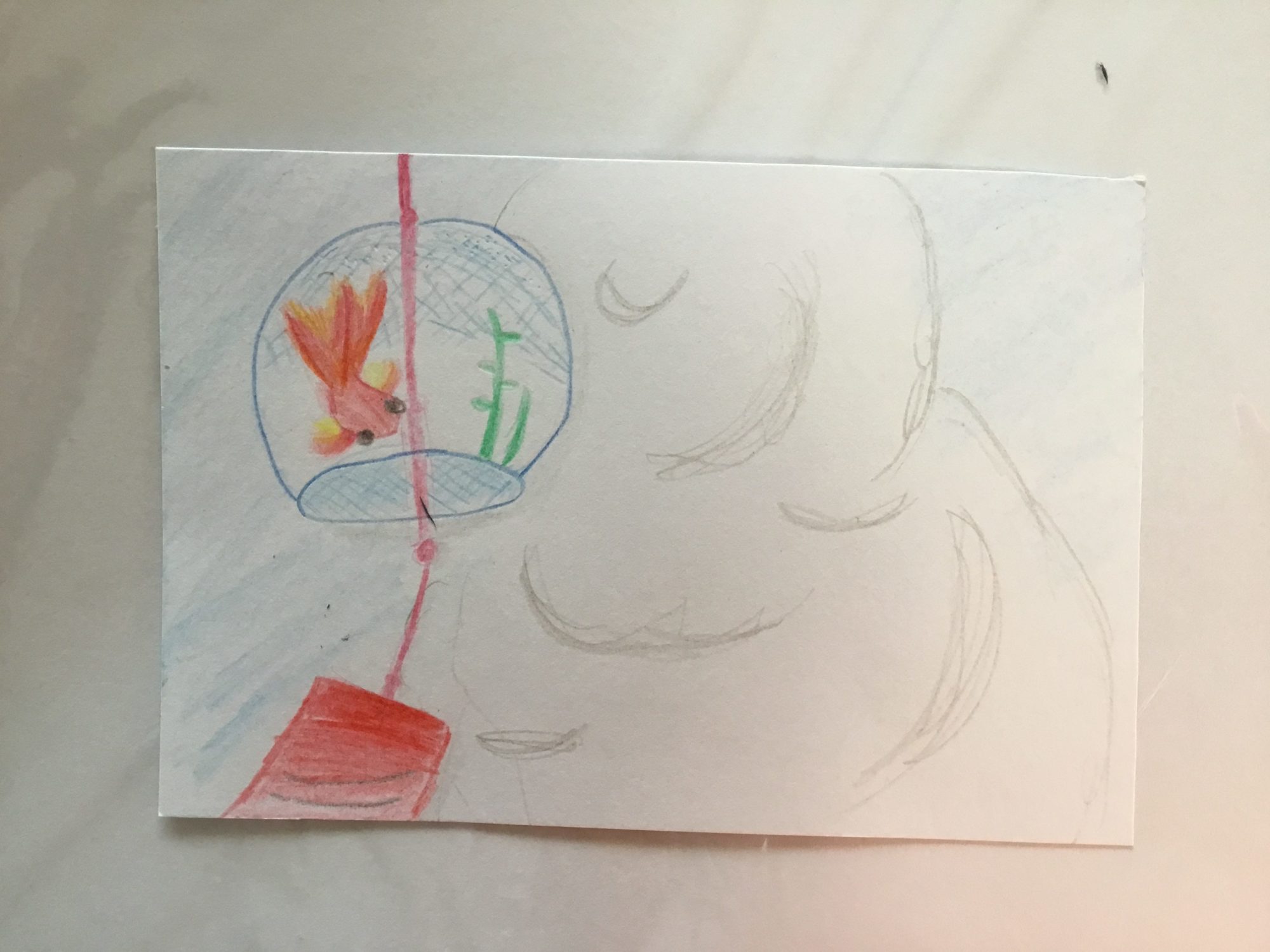 スノーさんの「風鈴」、金魚鉢の中に泳ぐ金魚が描かれていて、まるで夏の音と涼しさが目に見えるようです。グラデーションもきれいに仕上がっていて、水の透明感やガラスの質感が感じられます。