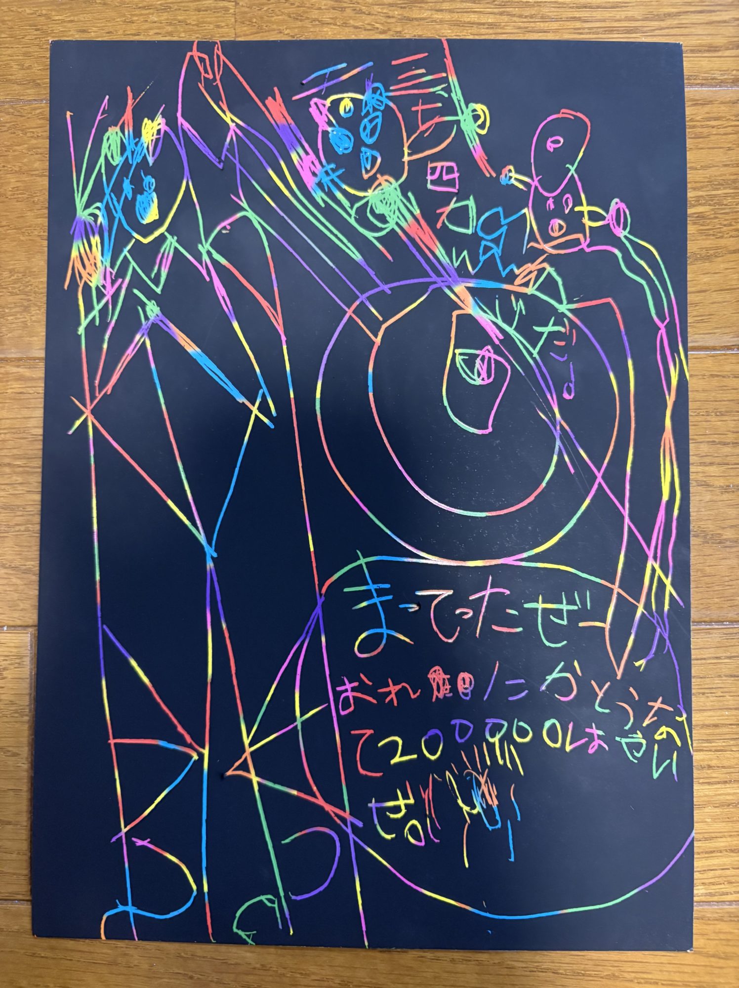 真っ黒な紙に自分で絵を描いて、スクラッチアートを作りました🎨