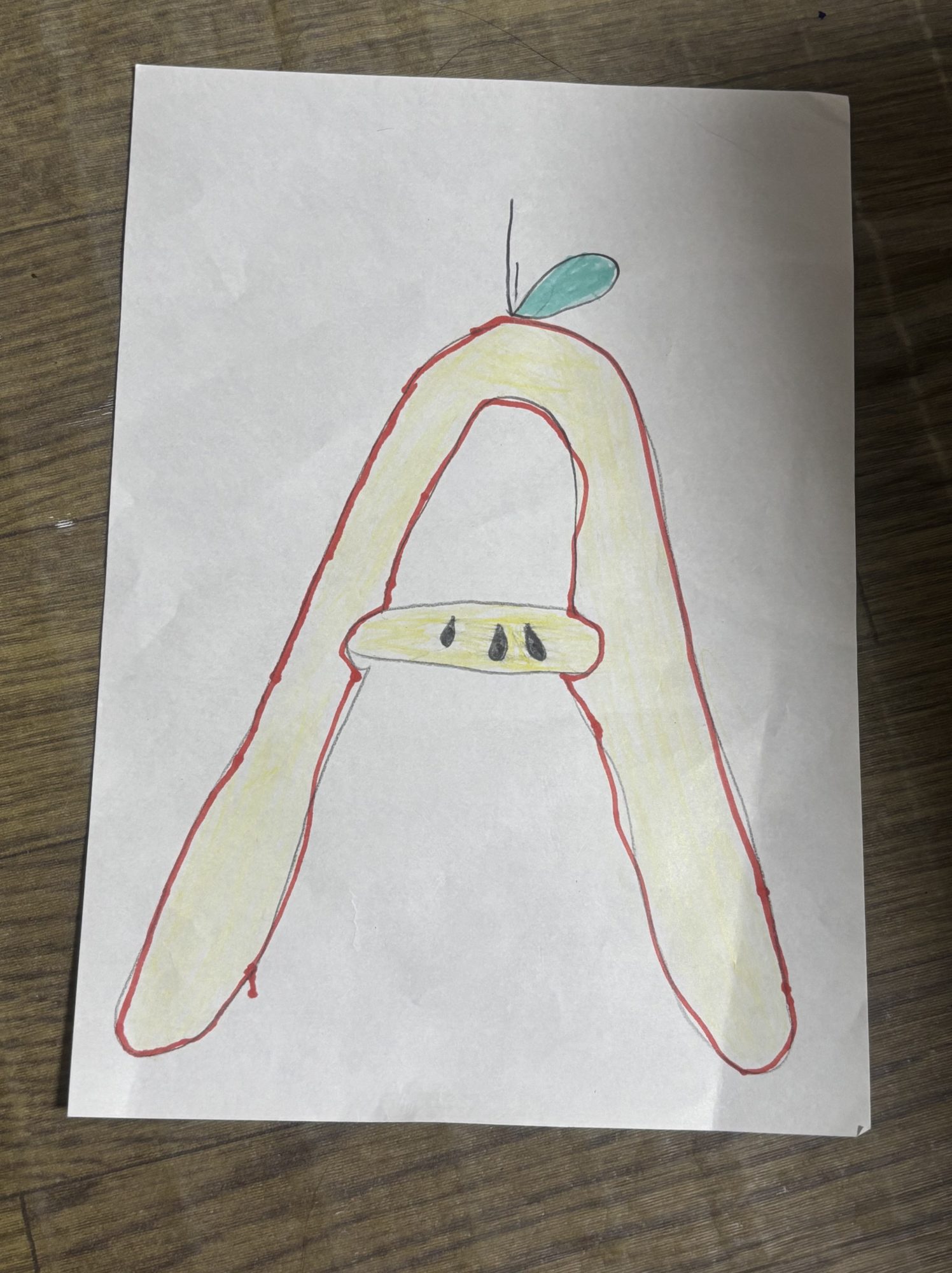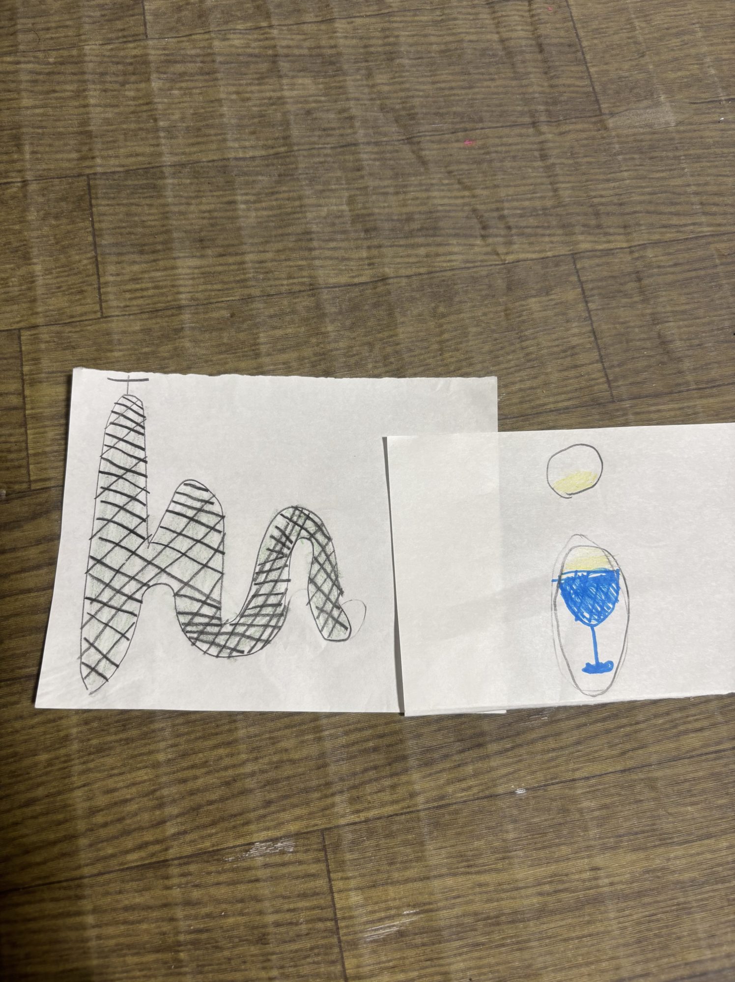 Aはりんご、mはメロン、iはアイスクリームにしました。mの小文字がぐにゃぐにゃしていて描きにくかったです