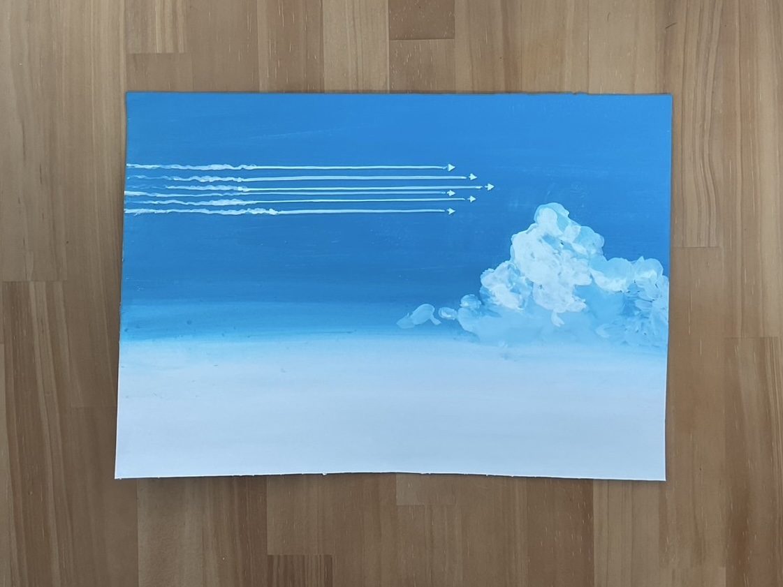 わかめせんせい 先生2025年9月7日 7:15 AM あや先生✈️✨ ブルーインパルスのスピード感と、澄み切った空に描かれる軌跡がとても爽快に表現されていますね。雲との対比によって、より一層「空を駆け抜ける」迫力が伝わってきます。 先生が作品に込められた感動が、見る人の胸にもそのまま響いてきます。「空を描こう」シリーズ、次はどんな情景に出会えるのかとても楽しみにしています! ログインして返信する ↓