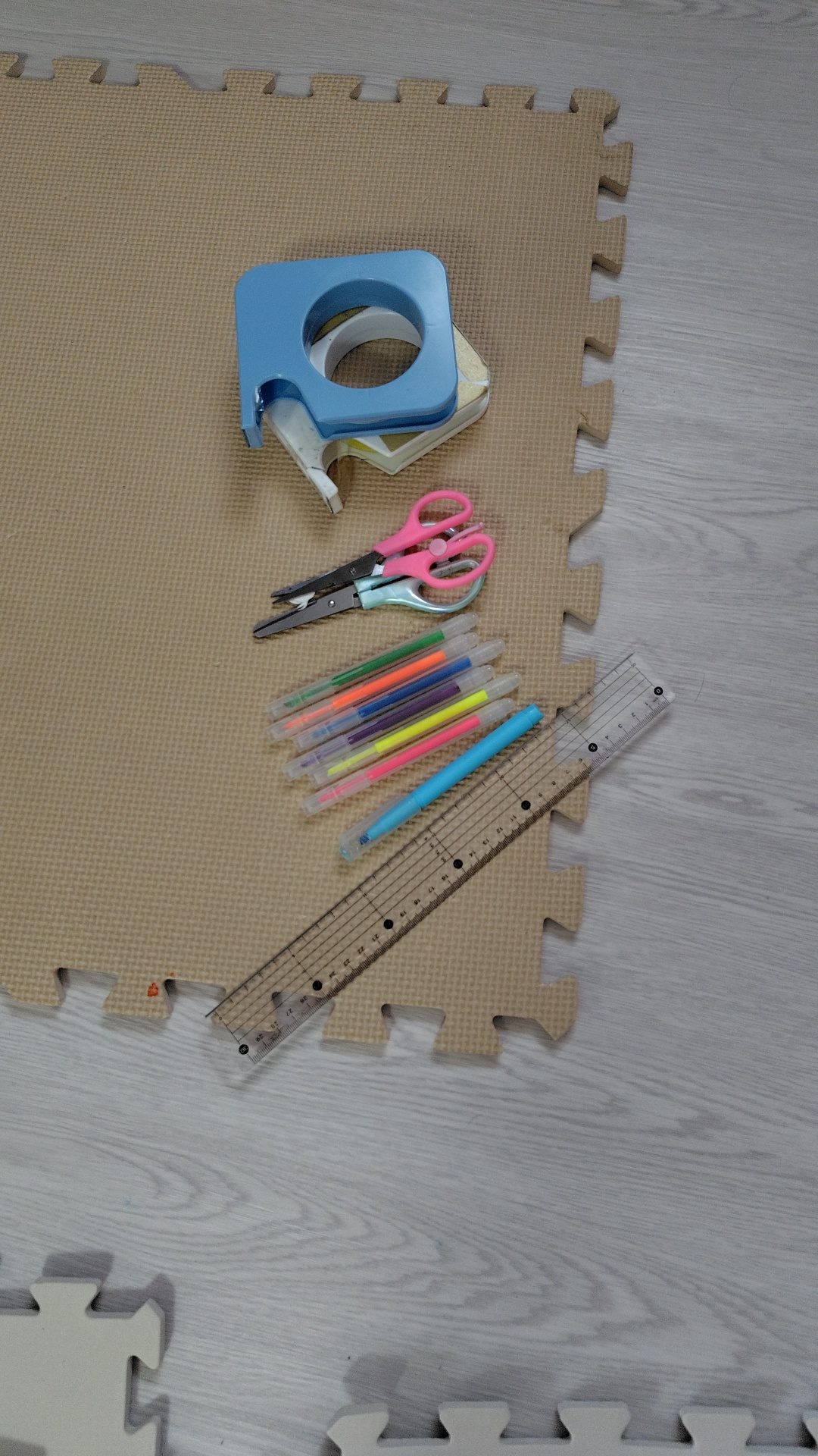 1)材料を準備します。(パネルマット、セロテープ、ハサミ、ペンなど)
