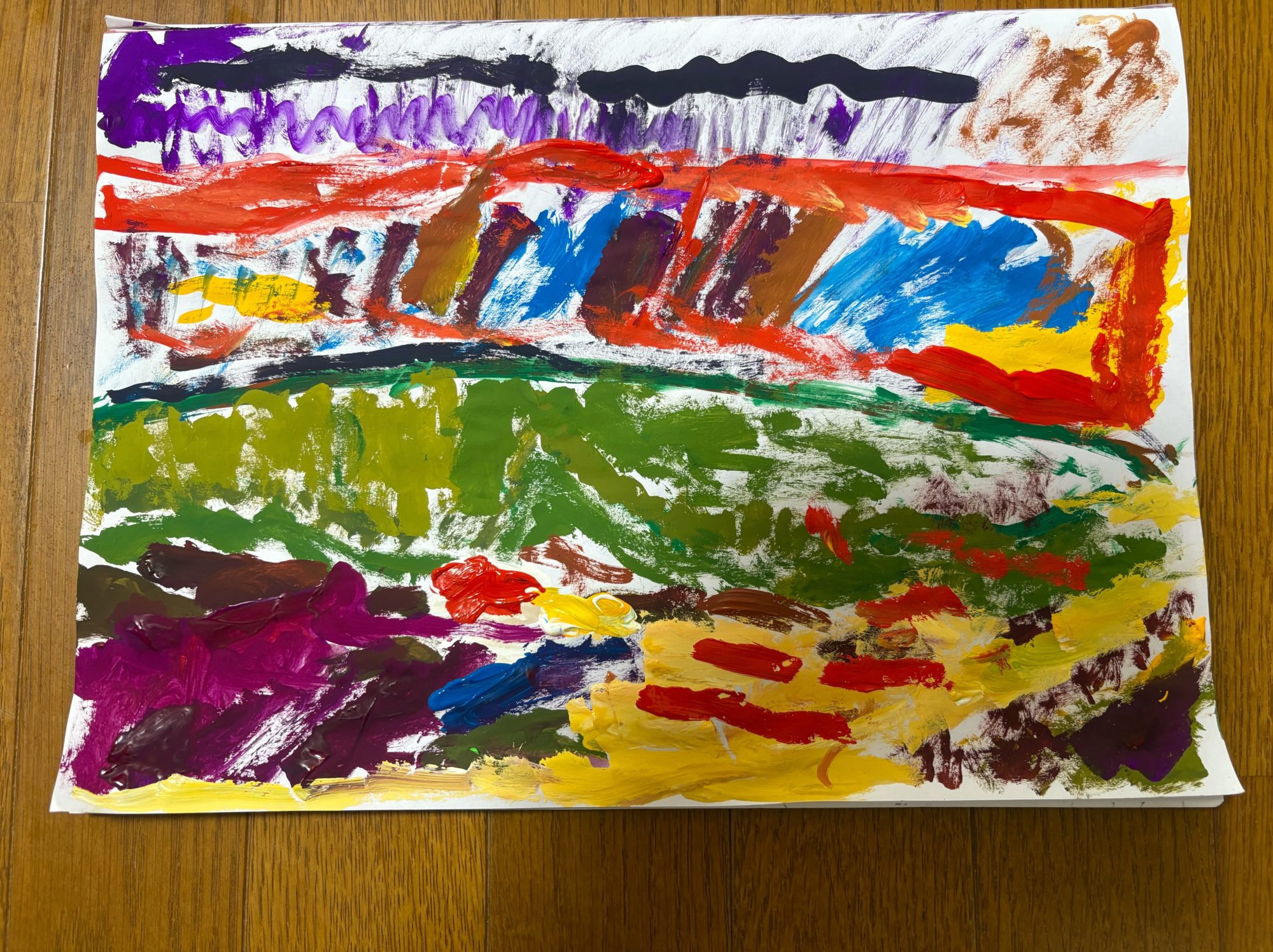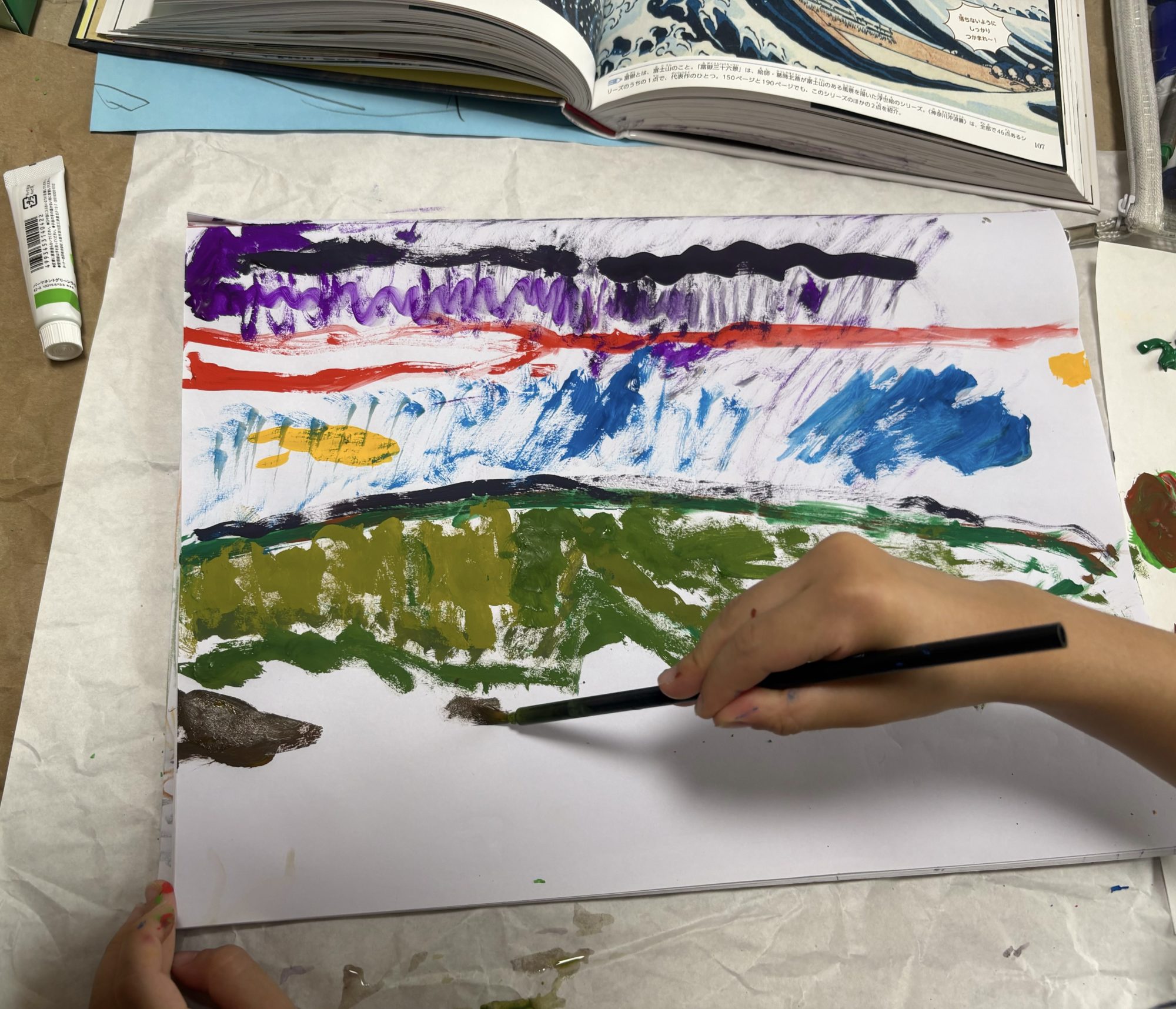 下絵で形をしっかり決めたあとに、絵の具で力強く塗り重ねていく姿勢が素晴らしいです👏