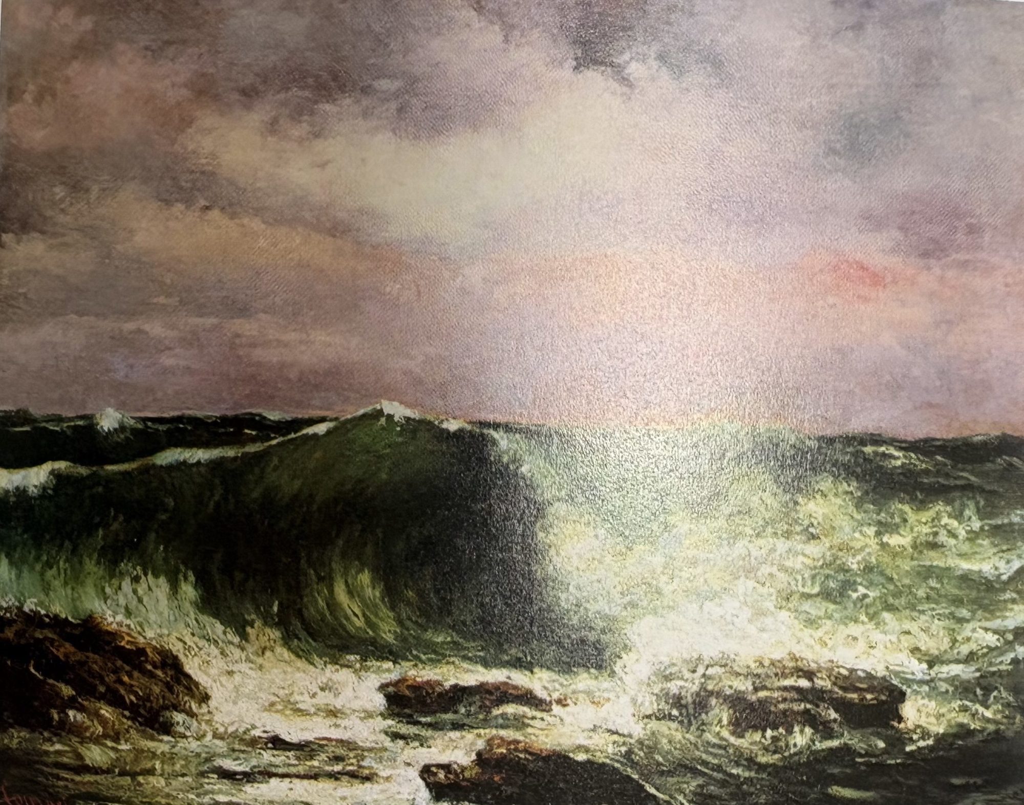 特に、空の部分に紫や黒、赤を混ぜて表したところが「ただの夜空」ではなく「嵐の夜空」として迫力を放っています。波や雲の動きが画面全体に広がっていて、見ている人が嵐のただ中に立っているような気持ちになります。